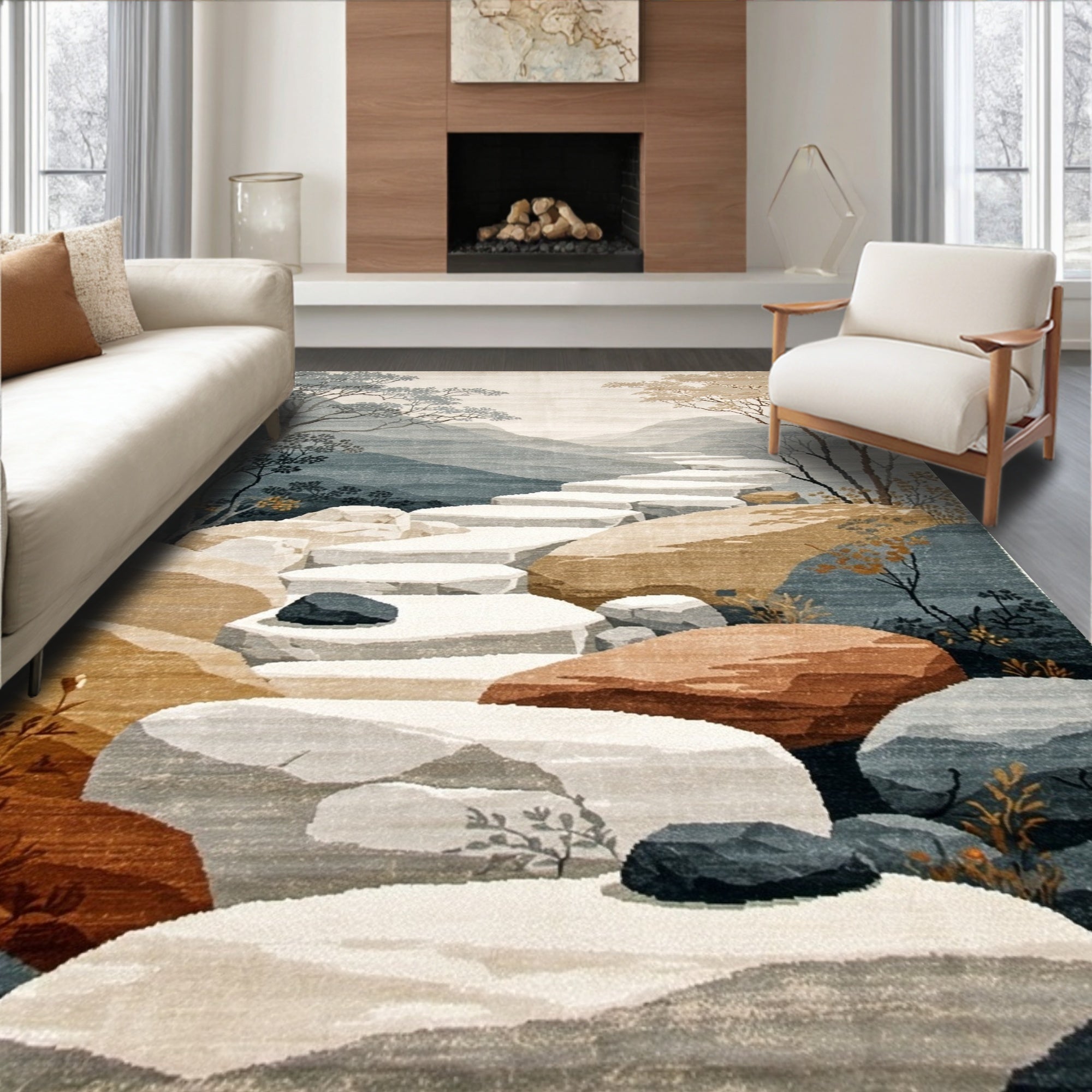 Tranquil Pebble Path Runner Featuring Neutral Abstract Stone(Beige)