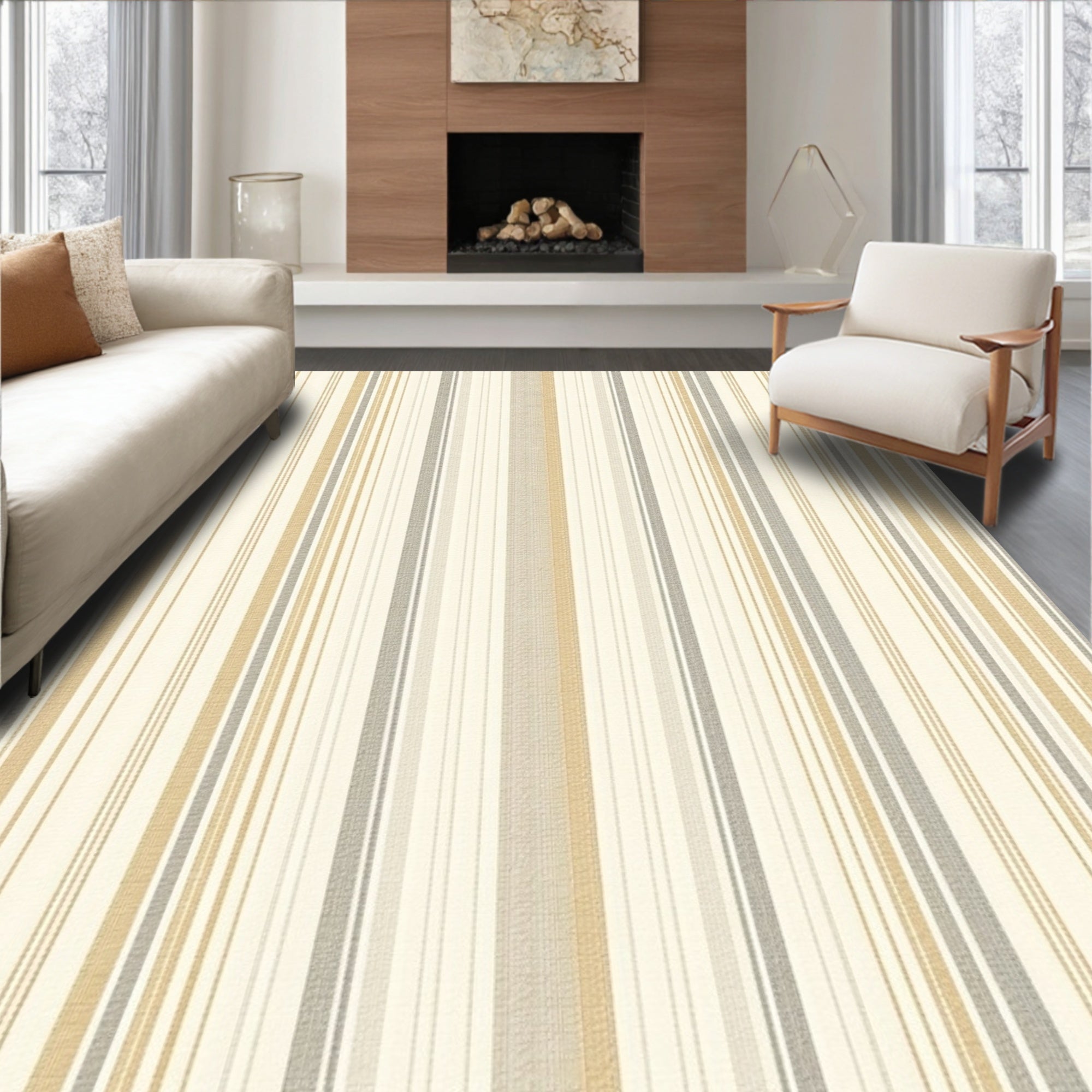 Beige Floor Mat with a Modern Minimalist Stripe Design(Beige)