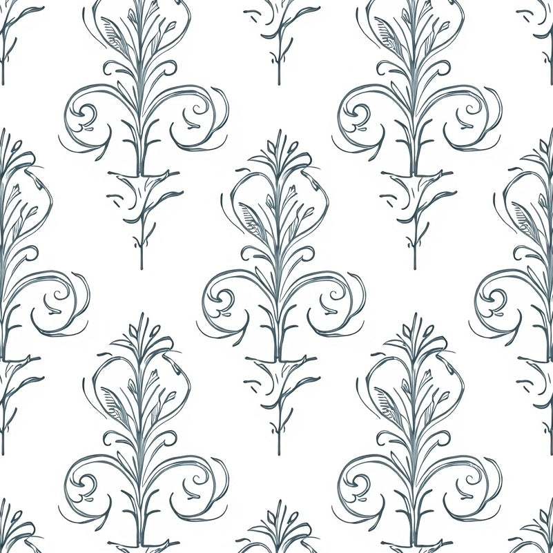 Vintage Damask Scrollwork with Botanical Vine Detailing(Blue)