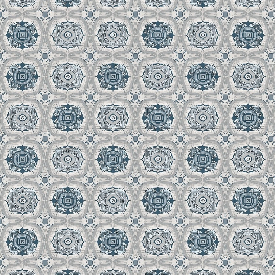 Elegant Interlocking Medallion Trellis Artistic Mid Design(Blue)