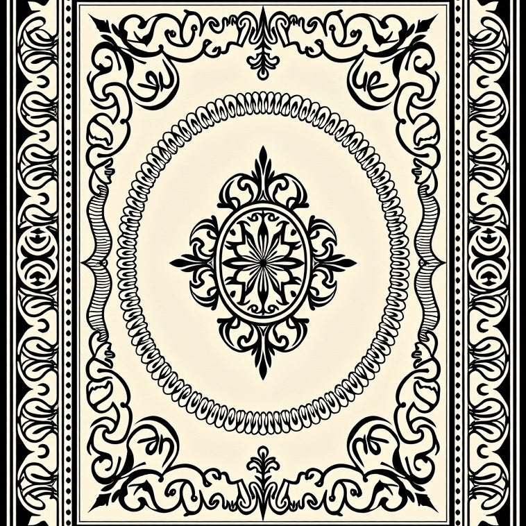 Sialk Hill Interlocking Medallion Motif with Baroque Filigree Accents(Black)