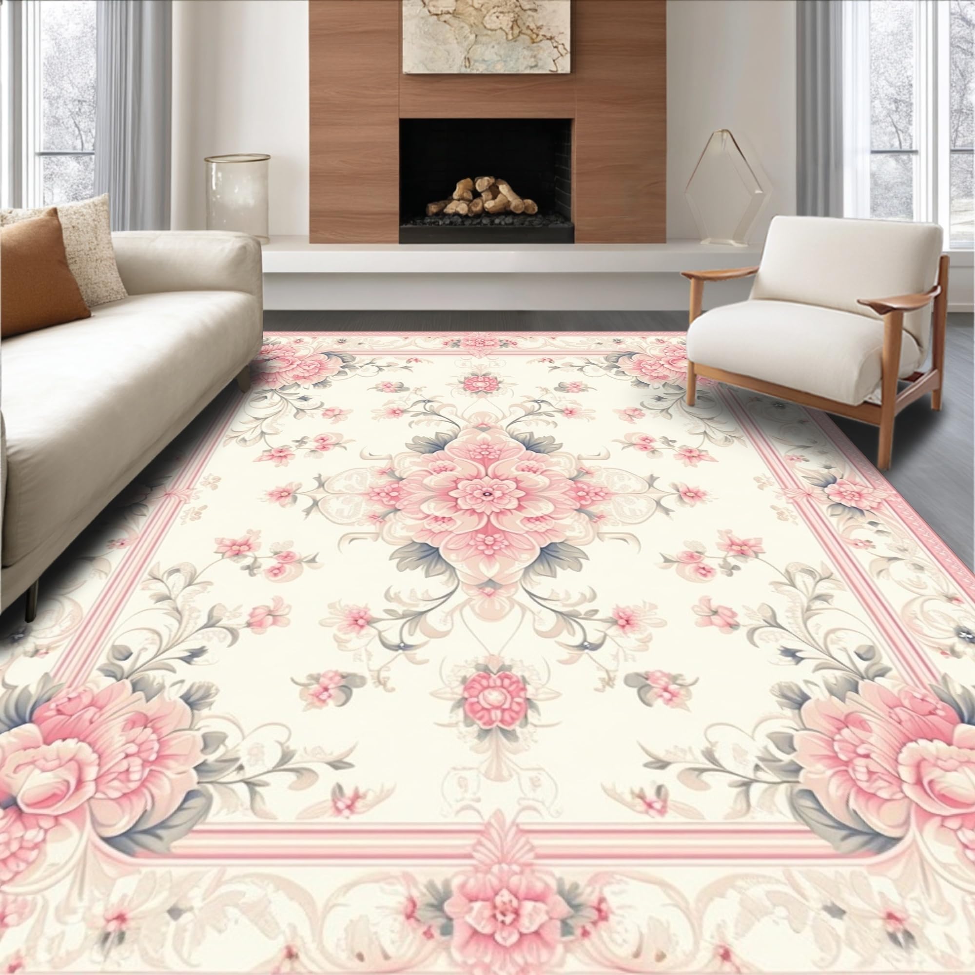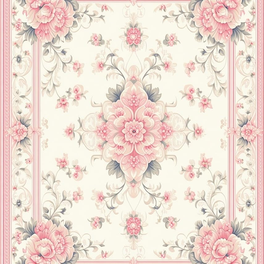 Elegant Floral Beige Area With Vintage Pink Botanical Motifs(Beige)