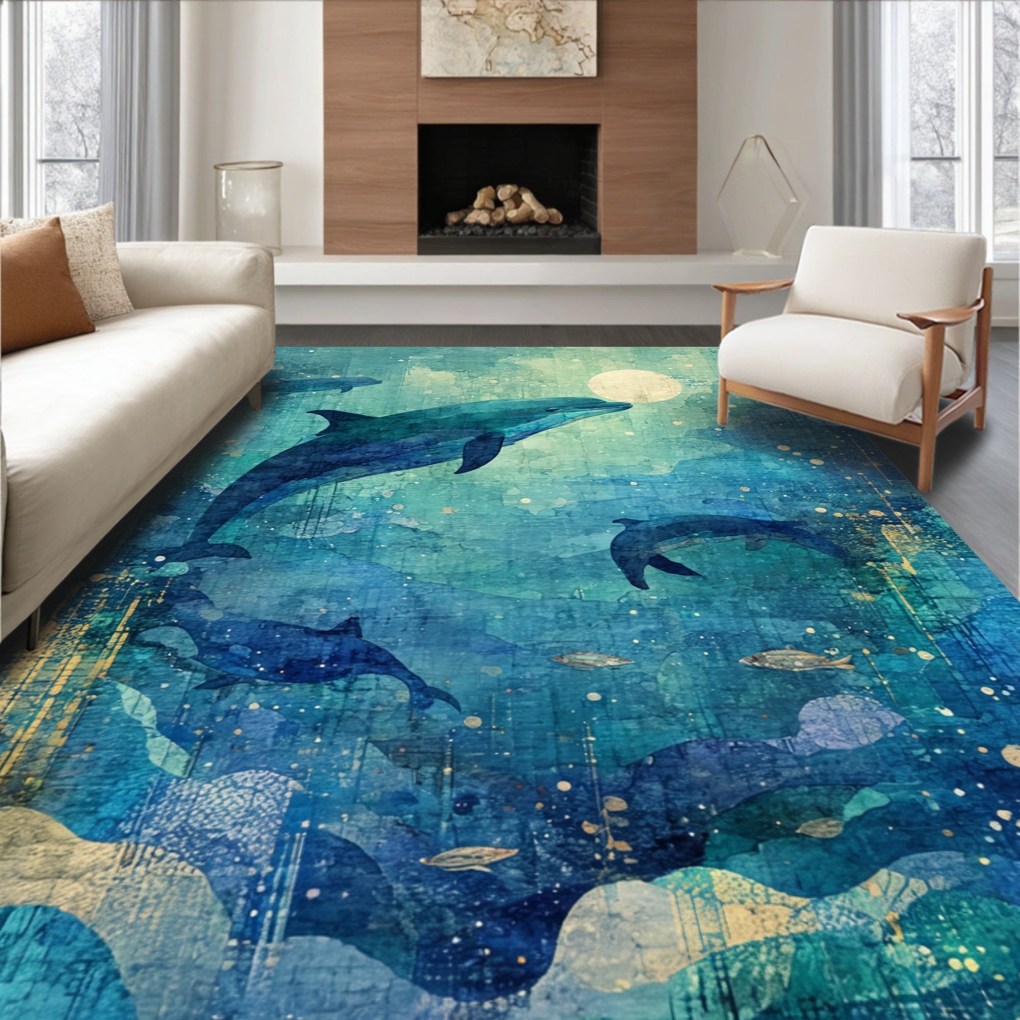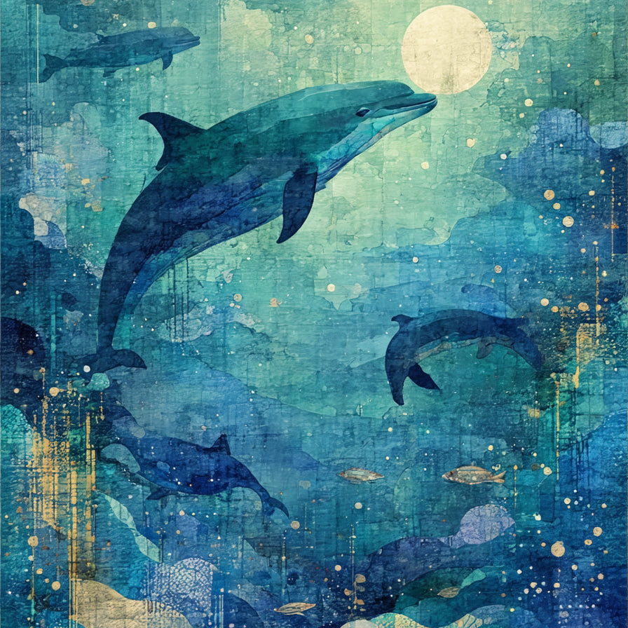 Seaside Creature Inspired with Oceanic Dolphin Octopus and Fish School(Blue)