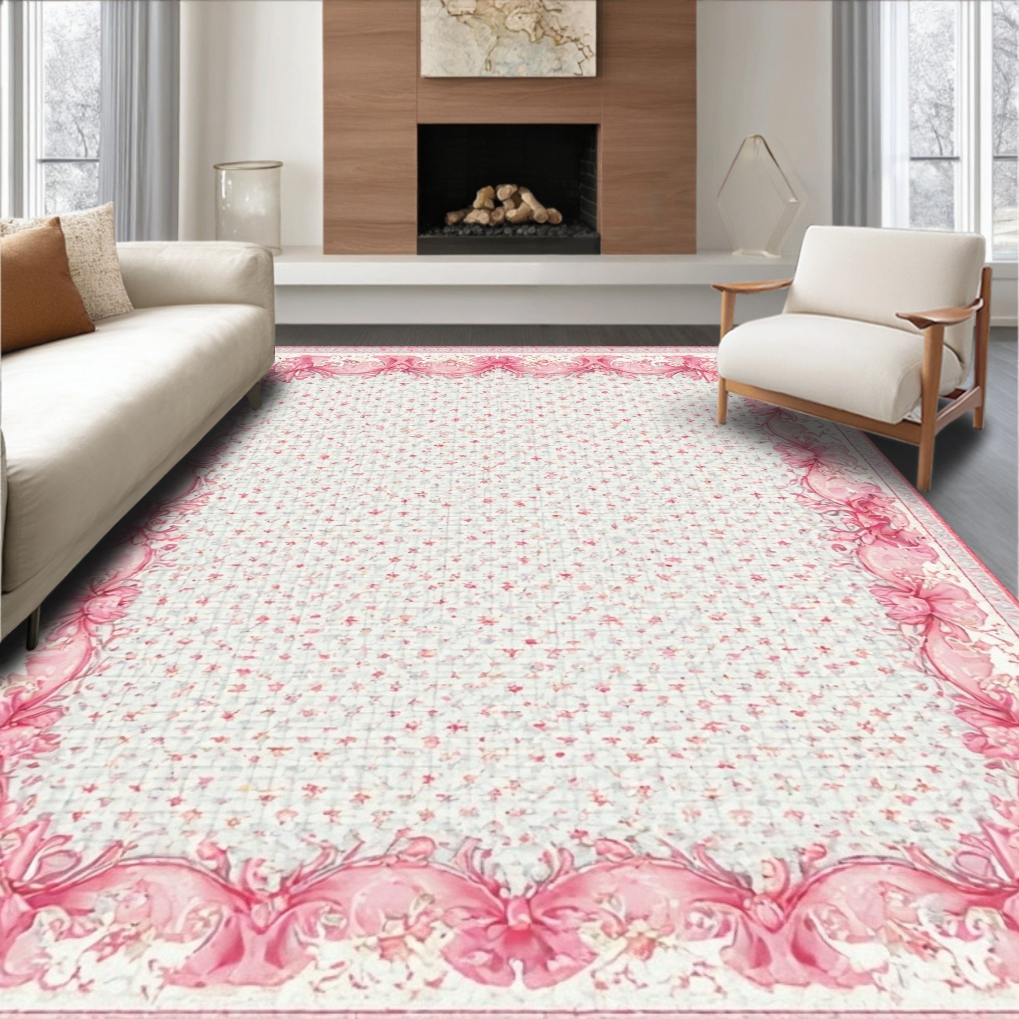 Ribbon Bow Coquette Preppy Accent with Wavy Border Design(Pink)