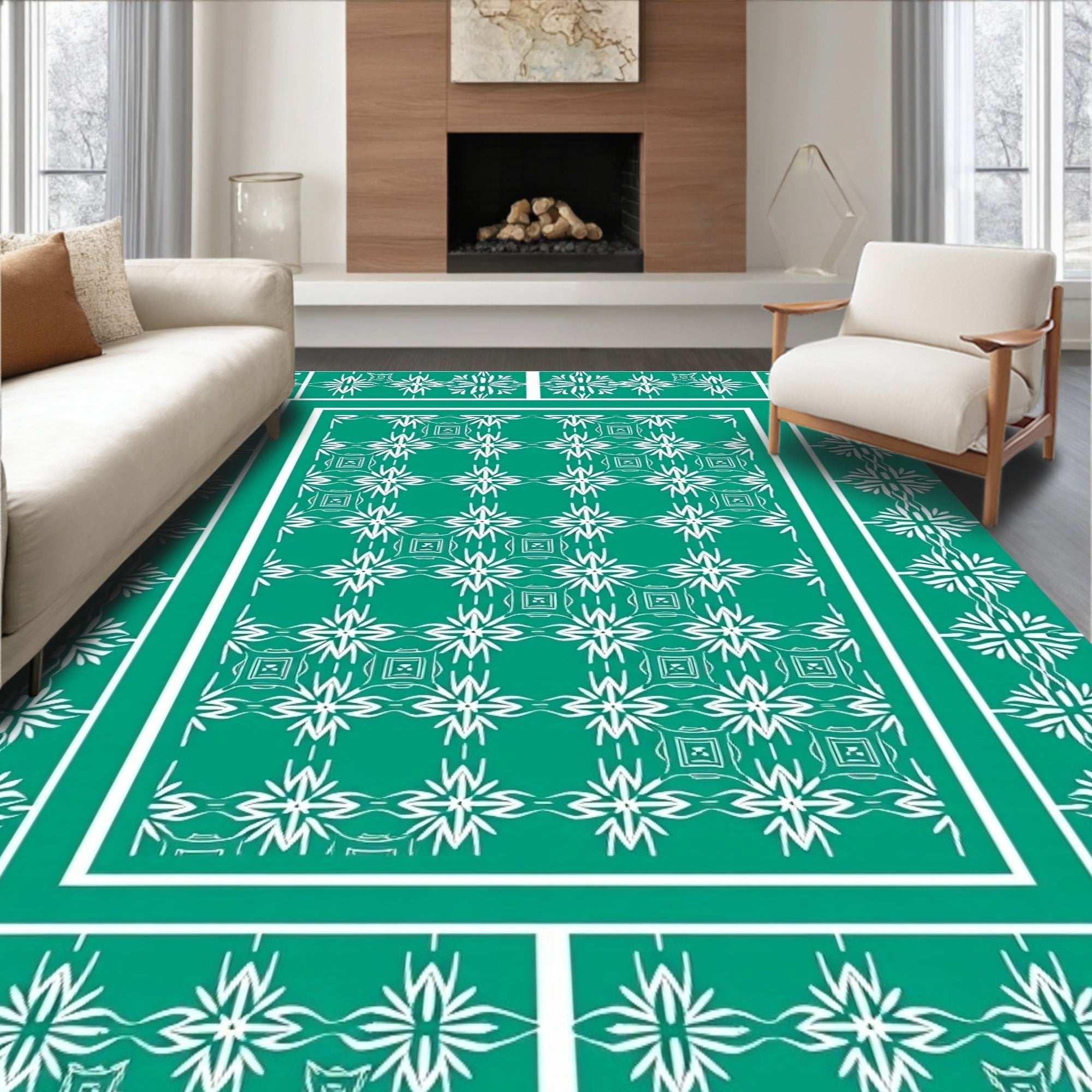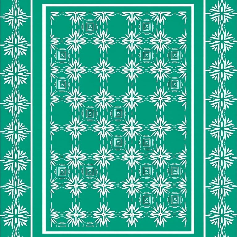 Classic Nordic Style Area With Repetitive Interlocking Snow Crystal(Green)