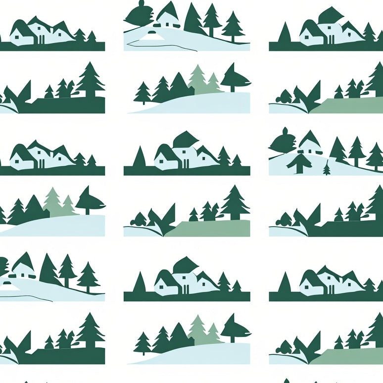 Nordic Village Patterned Featuring Interlocking Snowy Landscape Scenes(Green)