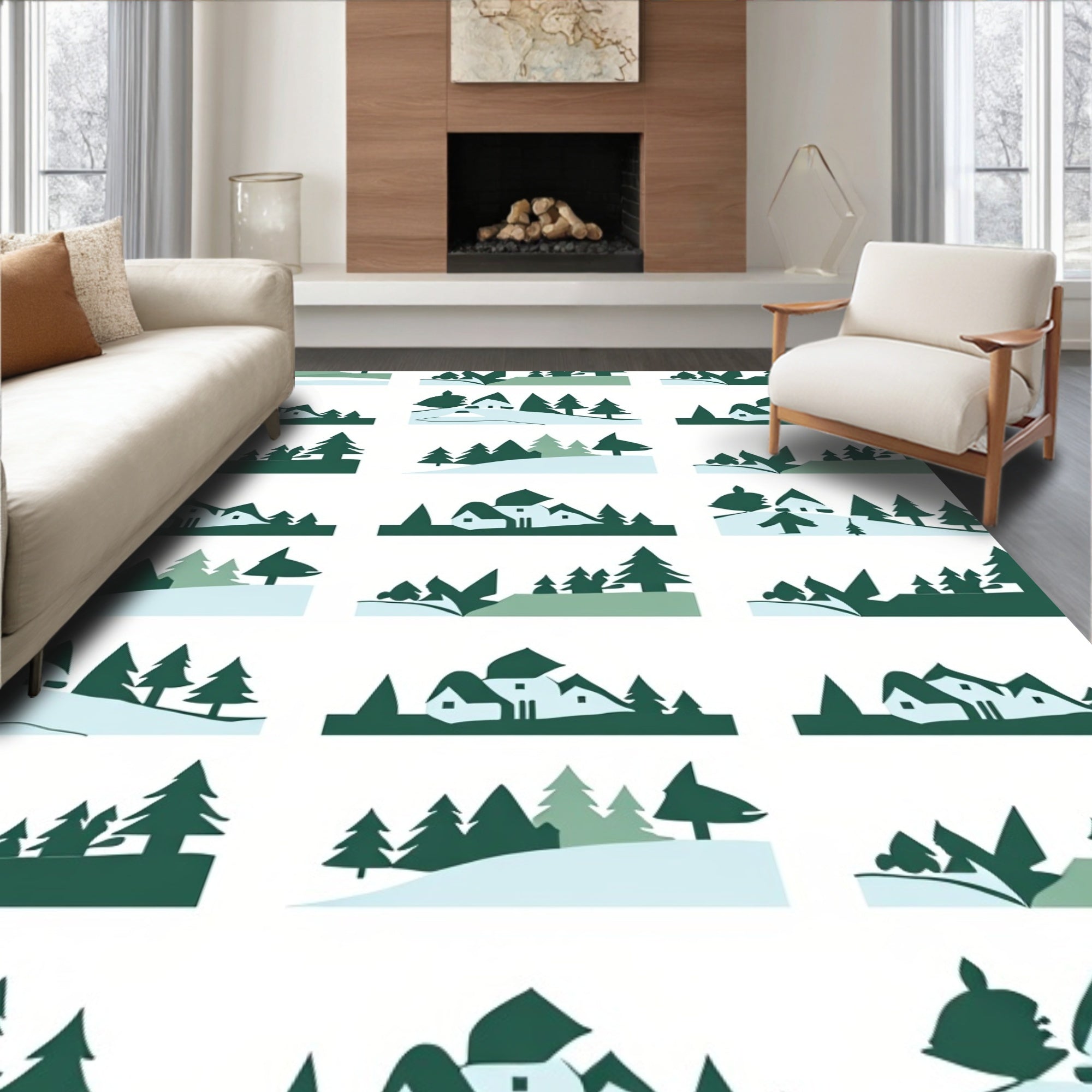 Festive Winter Wonderland Ornamental Design Plush Floor Covering(Beige)