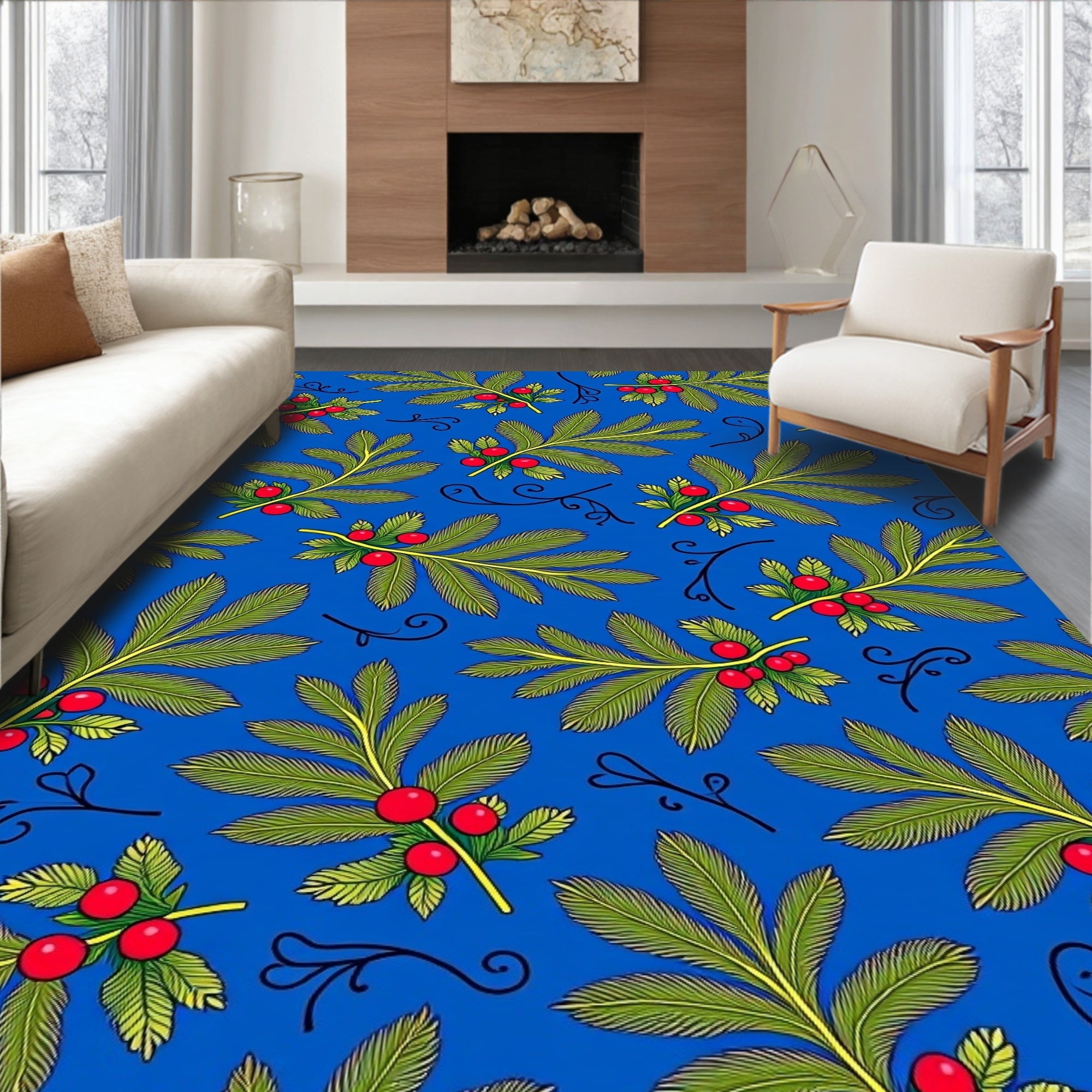 Festive Pine Branch Design Seasonal Celebration Floor Covering(Green)