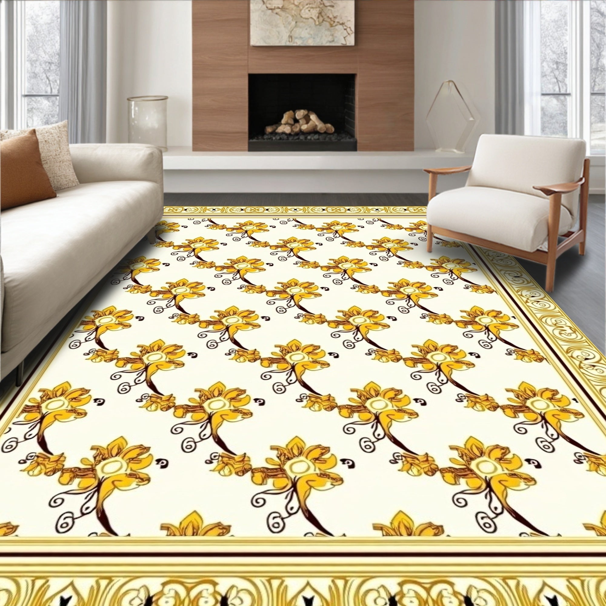 Vintage Damask Scroll Design Elegant Plush Floor Covering(Gold)