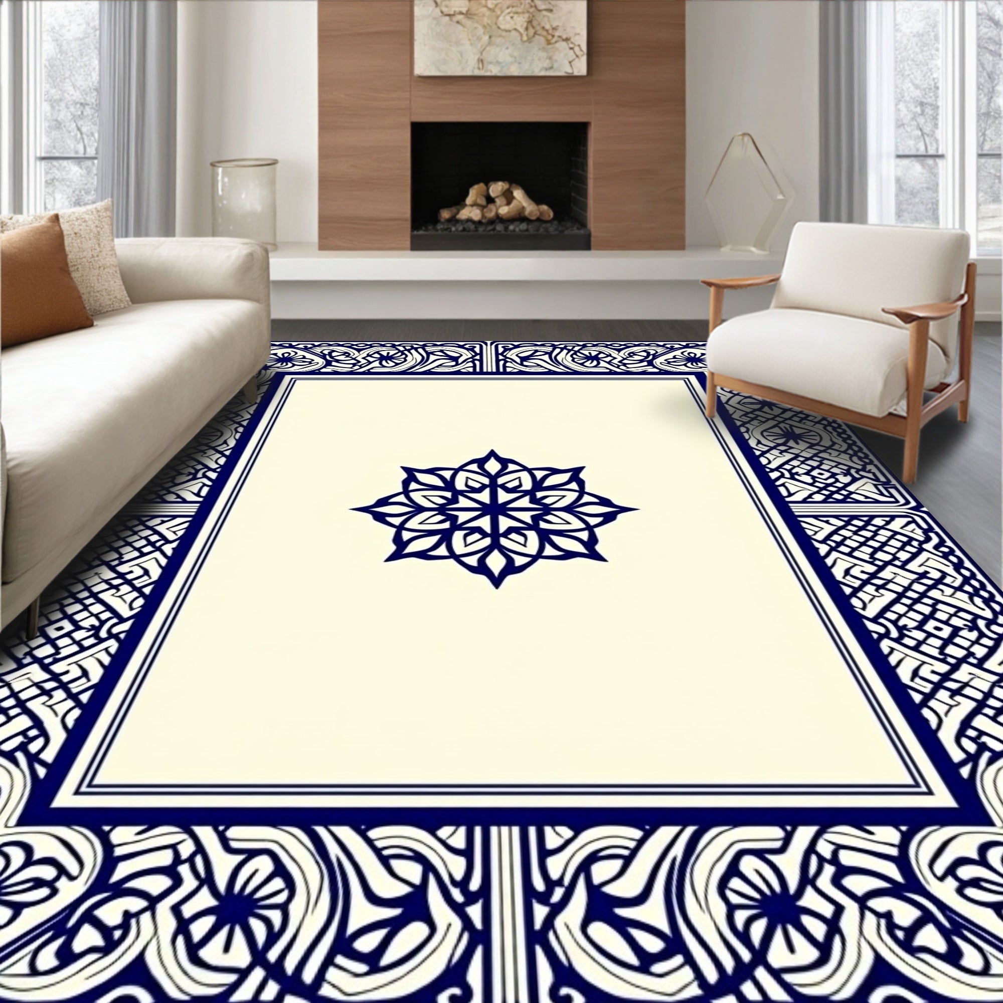 Retro Floral Medallion Motif with Distressed Ornate Botanical Detailing(Blue)