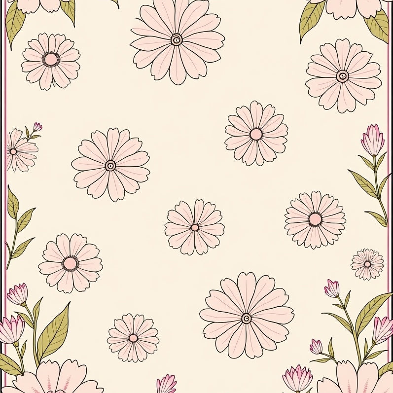 Botanical Fern Scrollwork with Flourishing Vine and Petal Motifs(Ivory)
