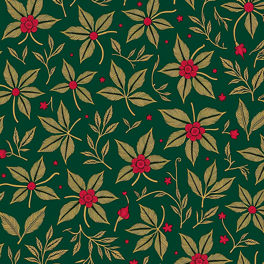 Jolly Poinsettia Scrollwork Baroque Floral with Berry Embellishments(Green)