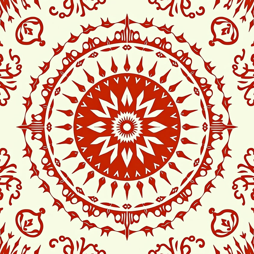 Sunburst Medallion Accent Plush Festive Elegant(Red)