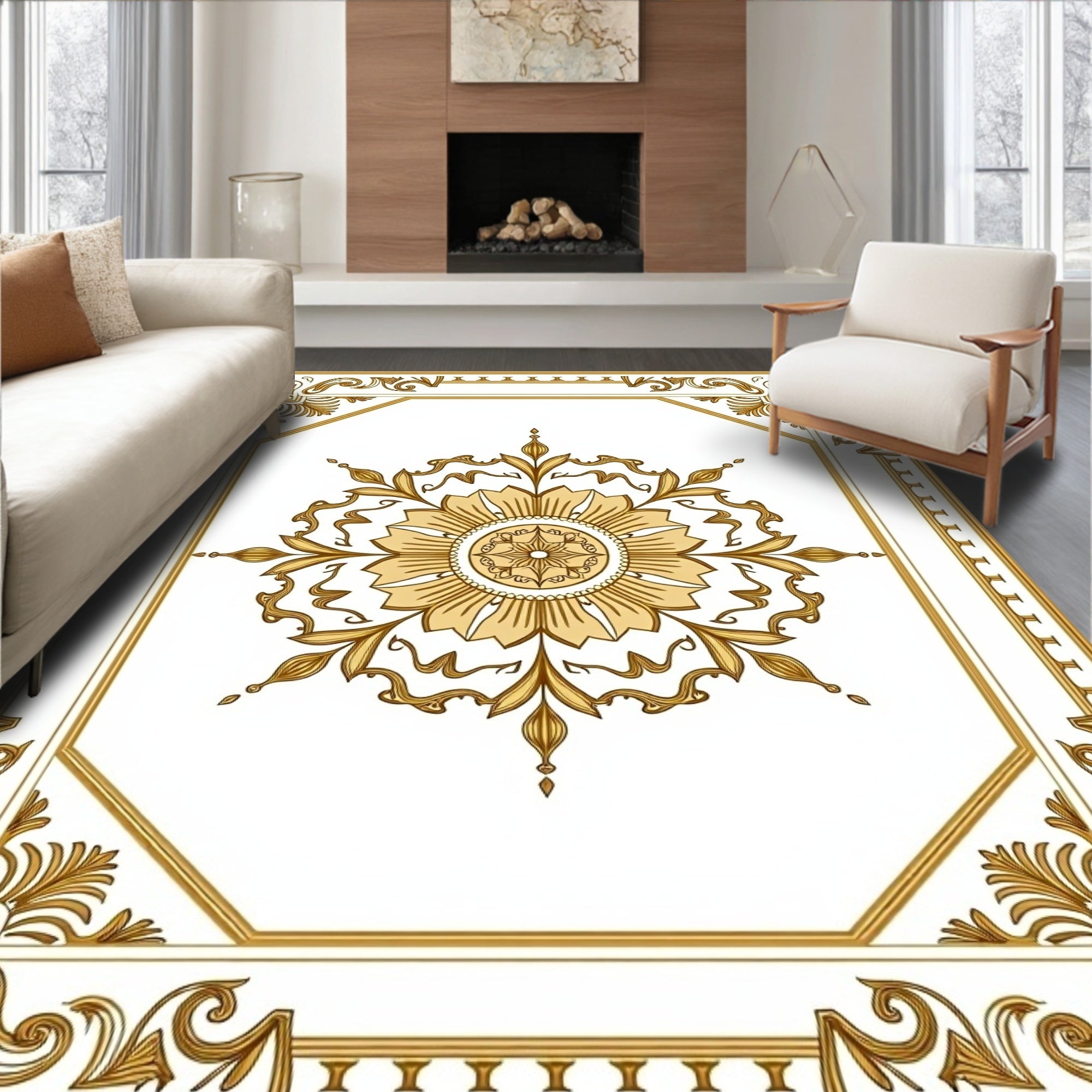 Vintage Medallion Burst Plush with Ornate Floral Motifs(Gold)