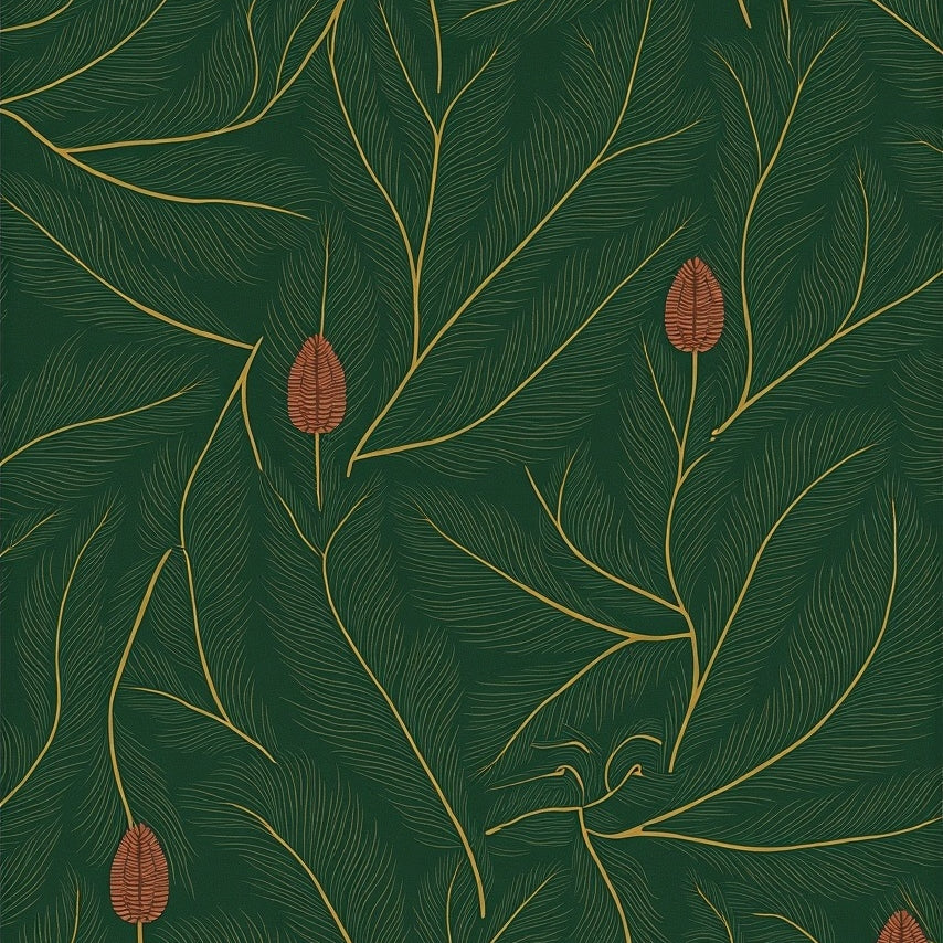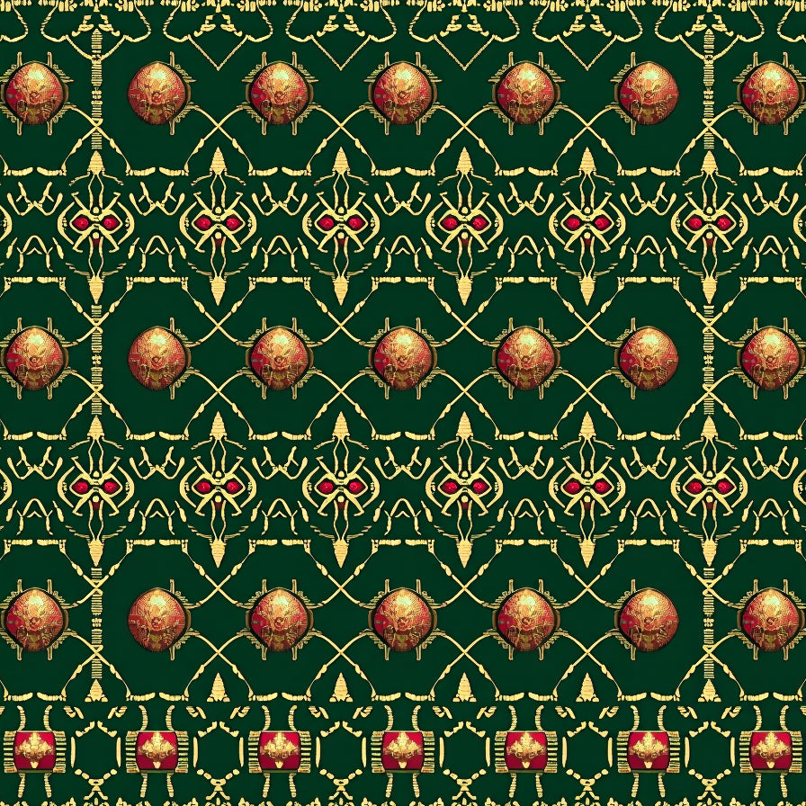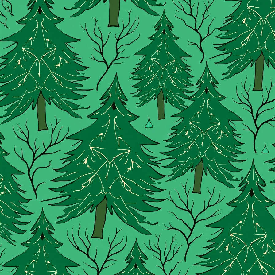 Ornate Lattice Network with Stylized Snowflake and Pine Needle Details(Green)