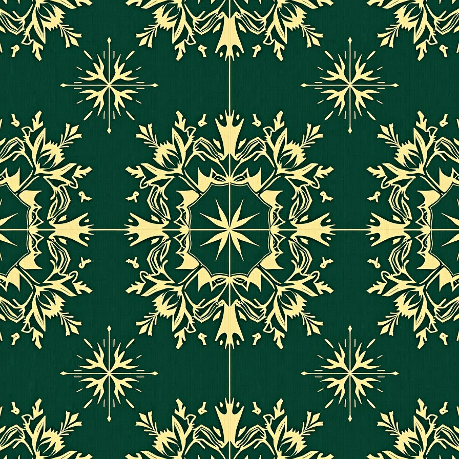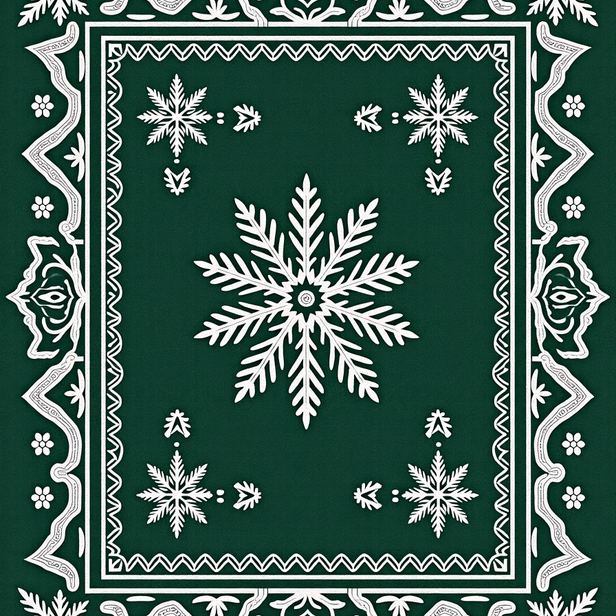 Festive Interlocking Motif with Ornate Snowflake Detailing(Green)