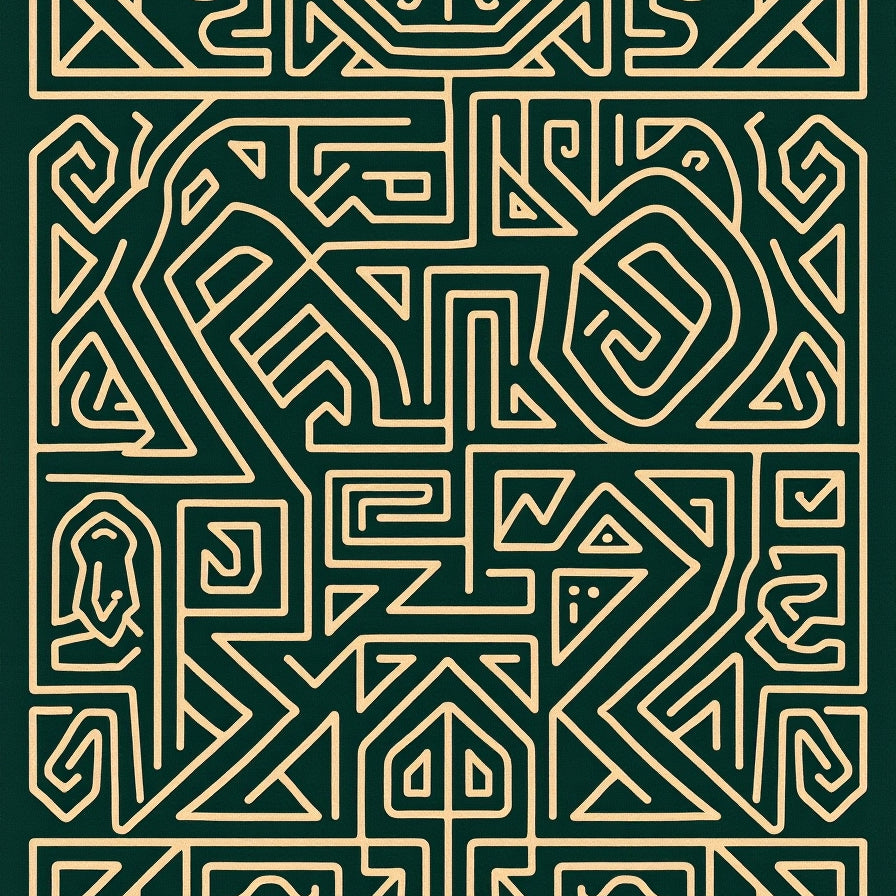 Nordic Modern Interlocking Maze with Abstract Botanical Motifs(Green)