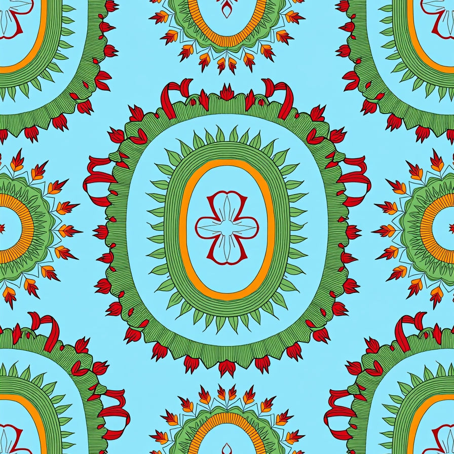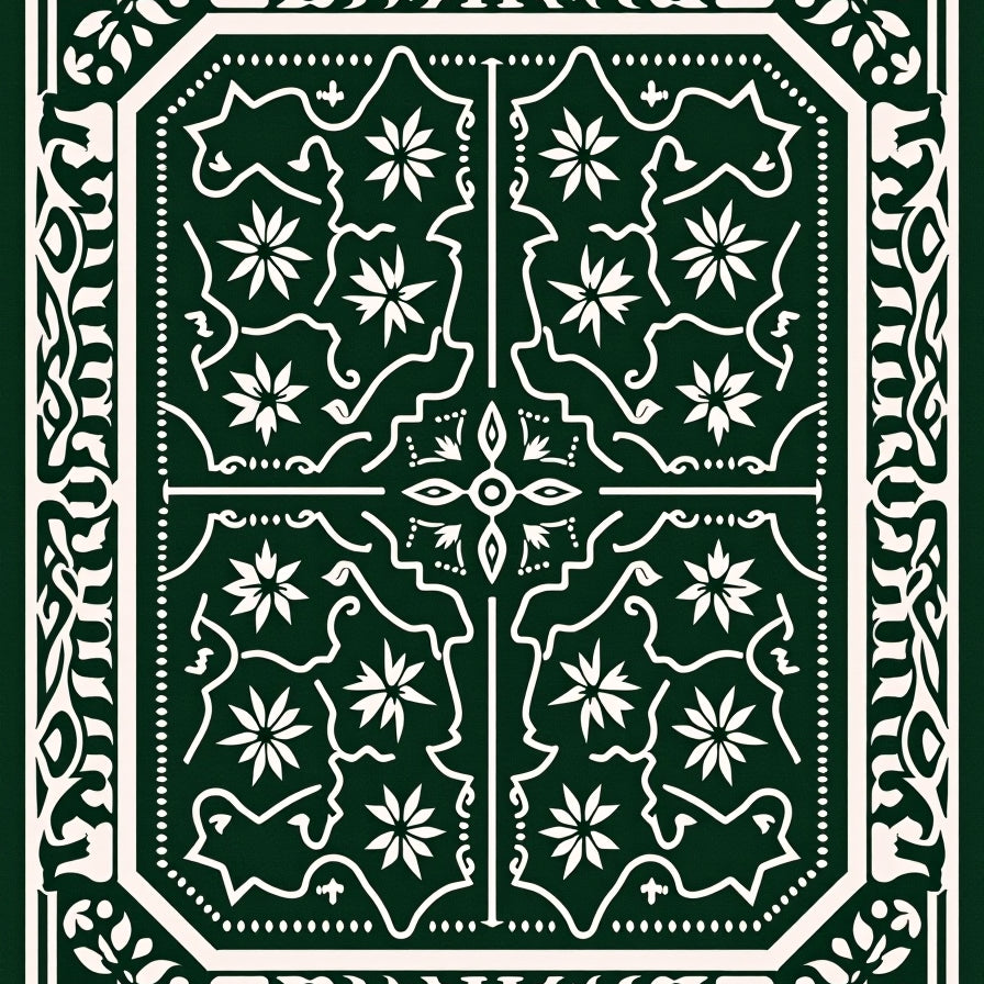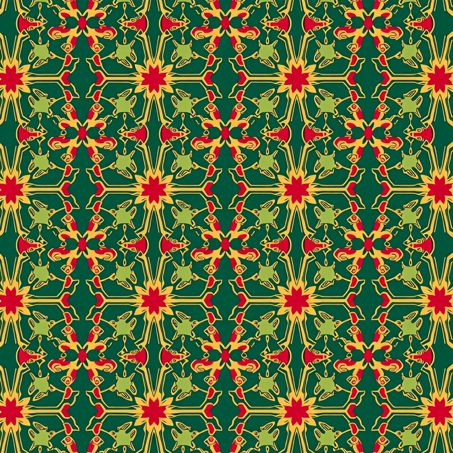 Festive Starburst Medallion and Evergreen Inspired Interlocking Design(Green)