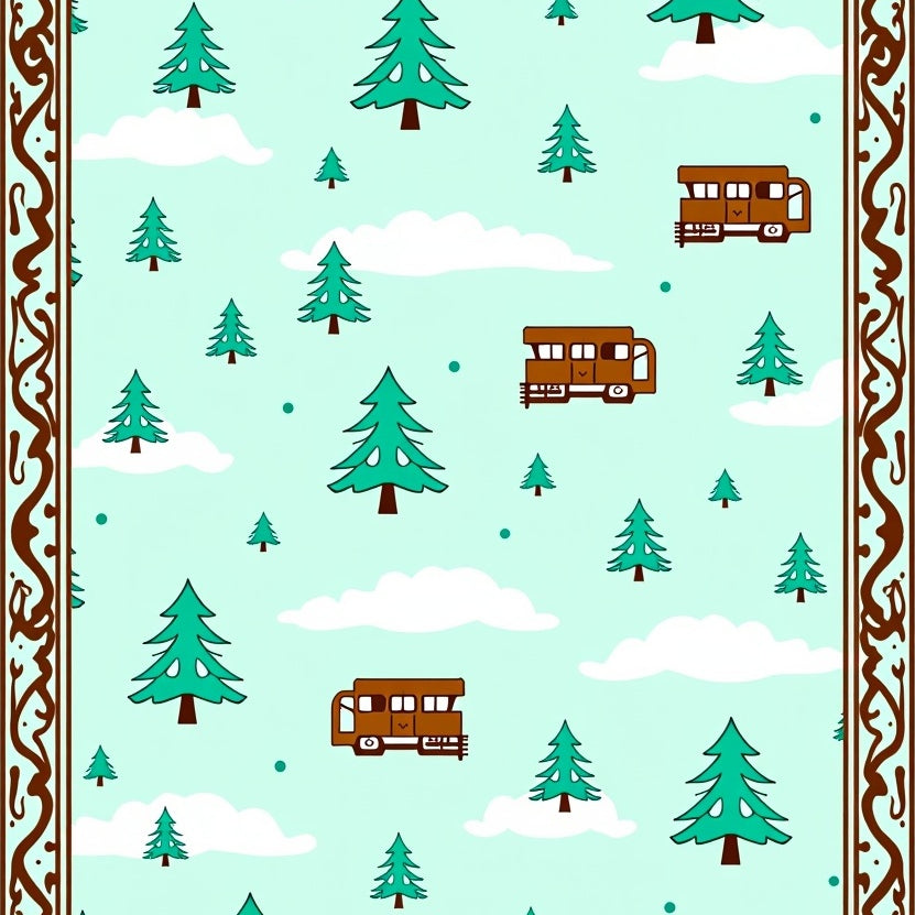 Winter Pine Interlocking Motif with Festive Embellished Borders(Red)