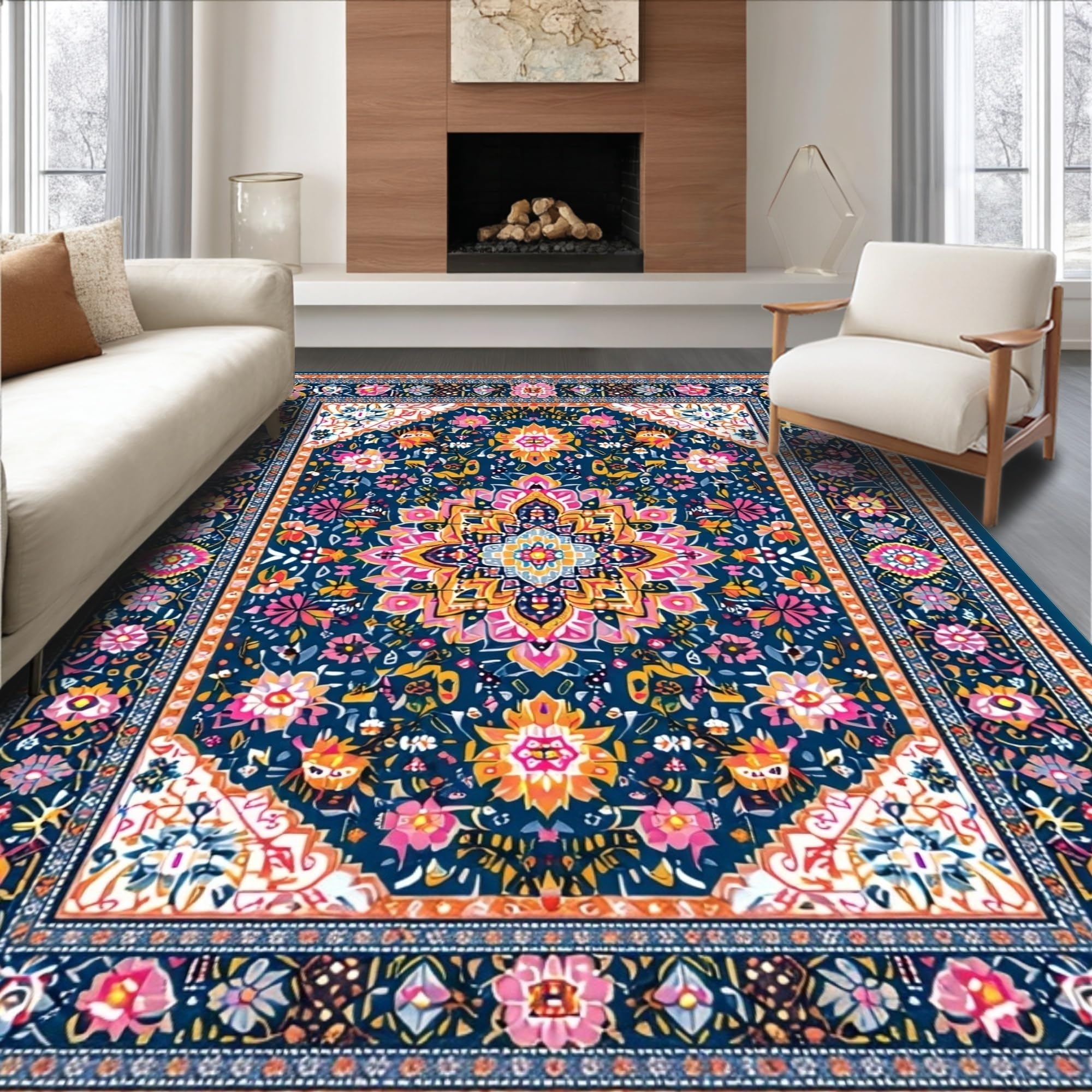 Eclectic Vintage Floral Medallion(Blue)