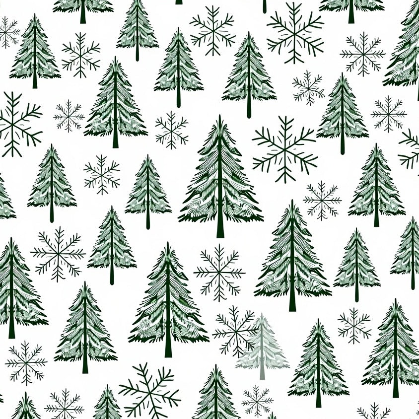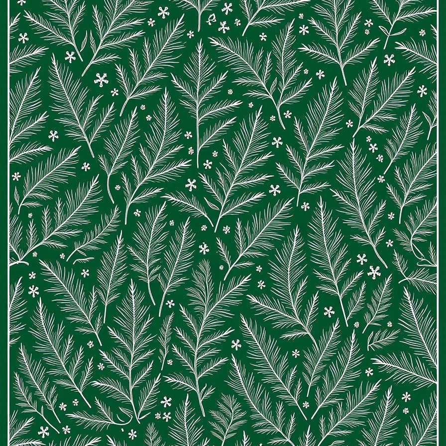 Holiday Evergreen Motif with Delicate Frostflake Embellishments(Green)