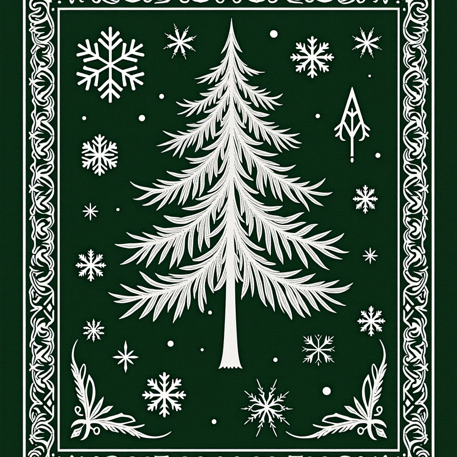 Winter Spruce Outline with Symmetrical Snow Crystal Accents(Green)