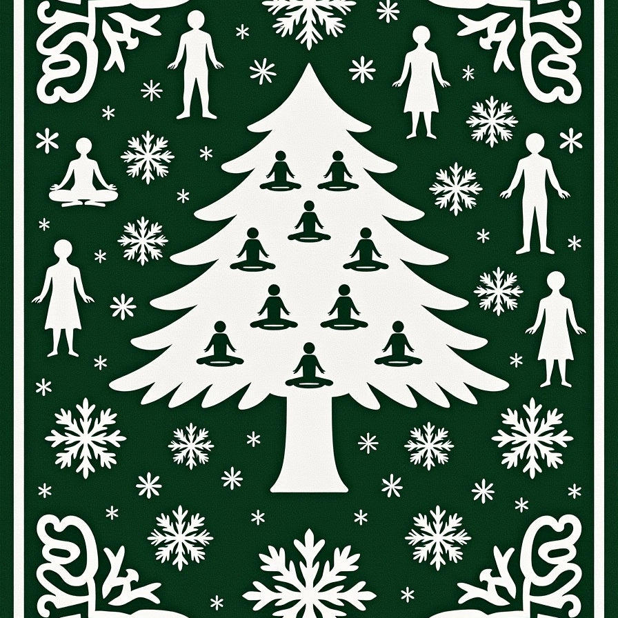 Yoga Pose Pine Tree With Frosted Snowflake Motif Design(Green)