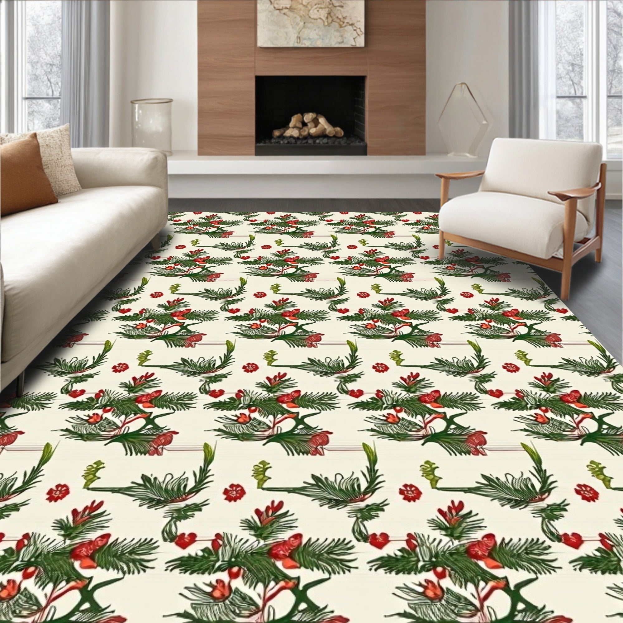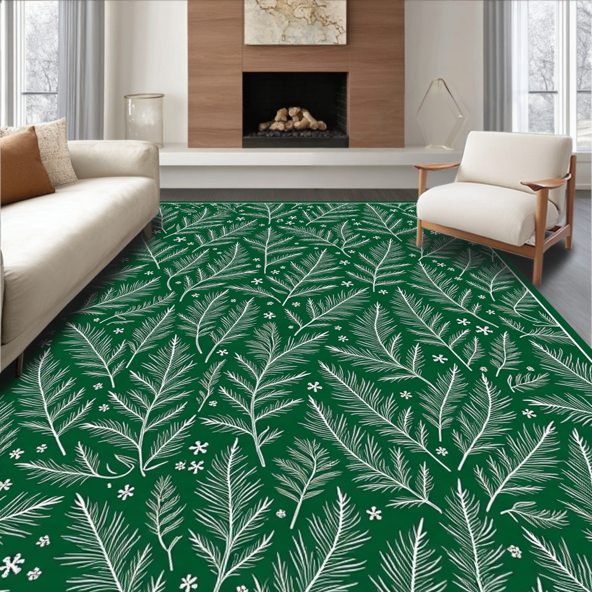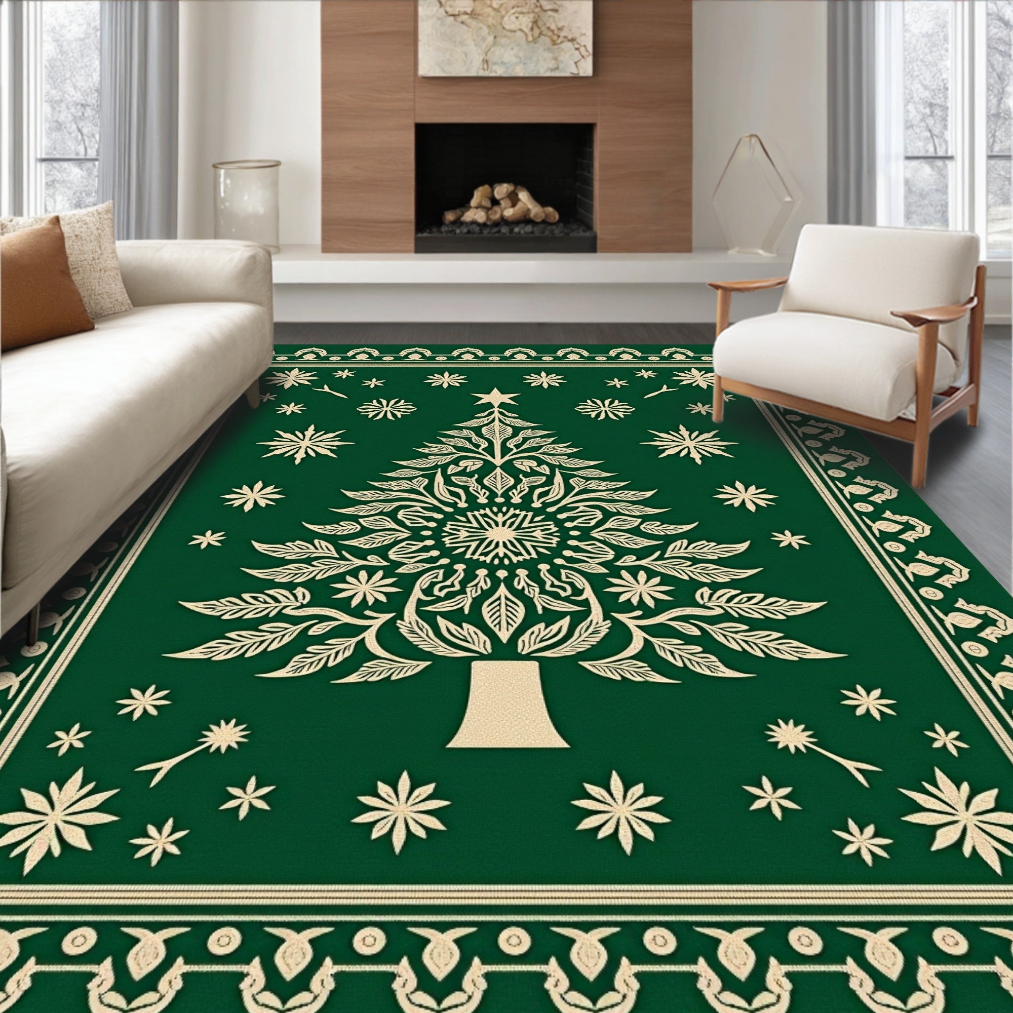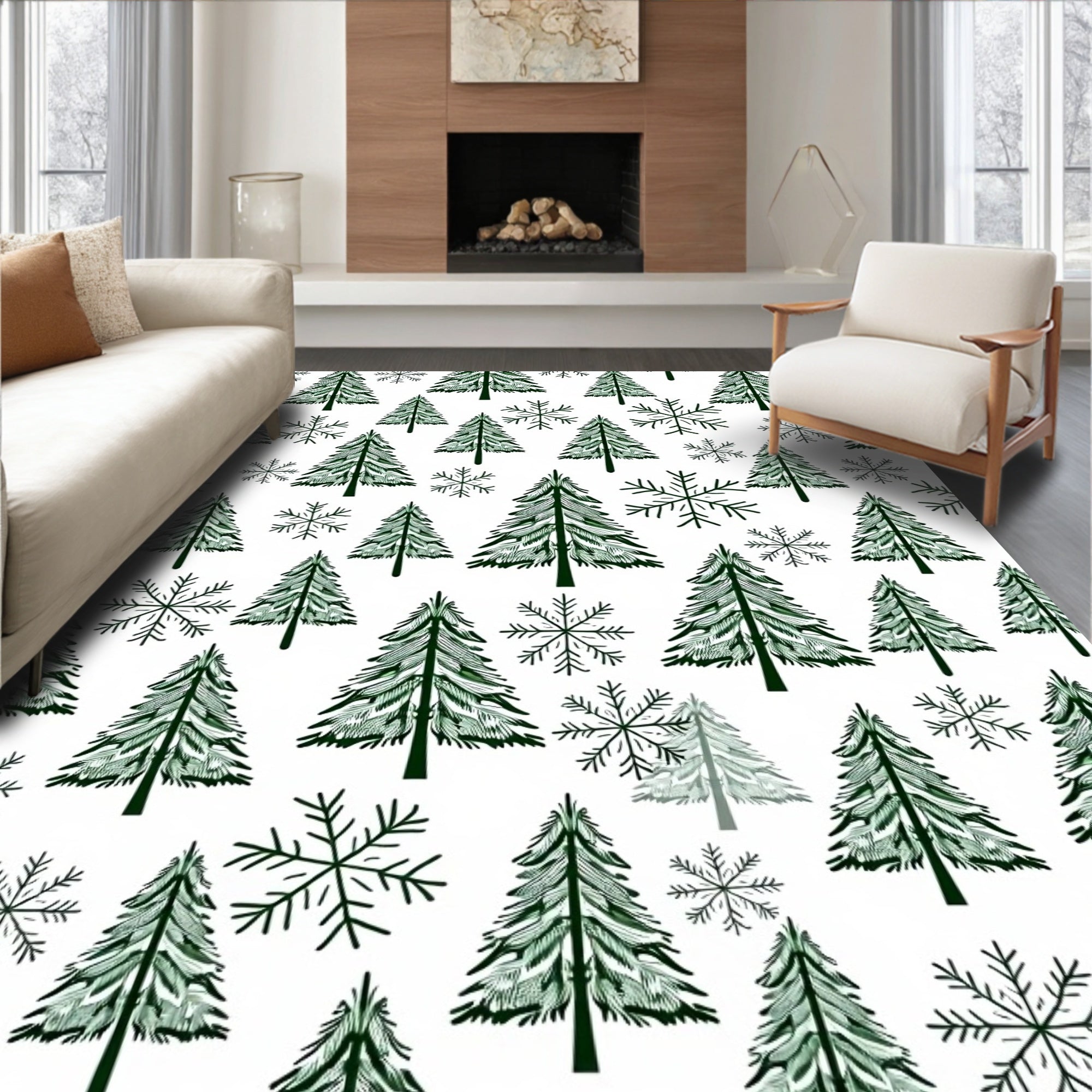 Festive Pine Tree Snowflake Half Moon Doormat Non Slip Holiday(Green)