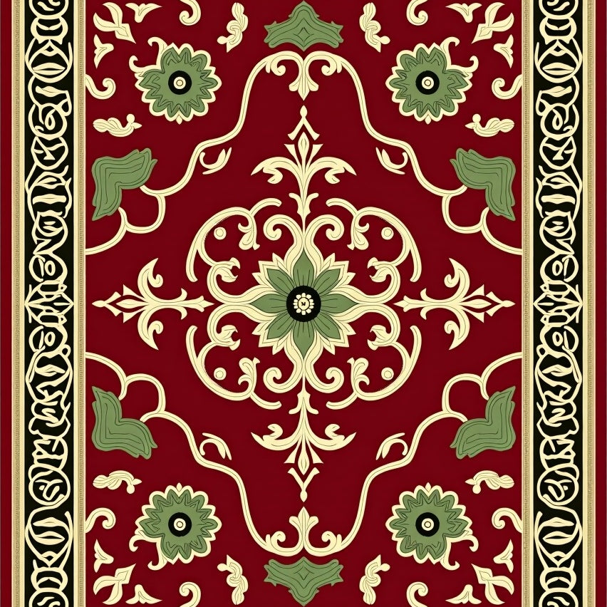 Traditional Paisley Medallion with Festive Holiday Motifs(Burgundy)