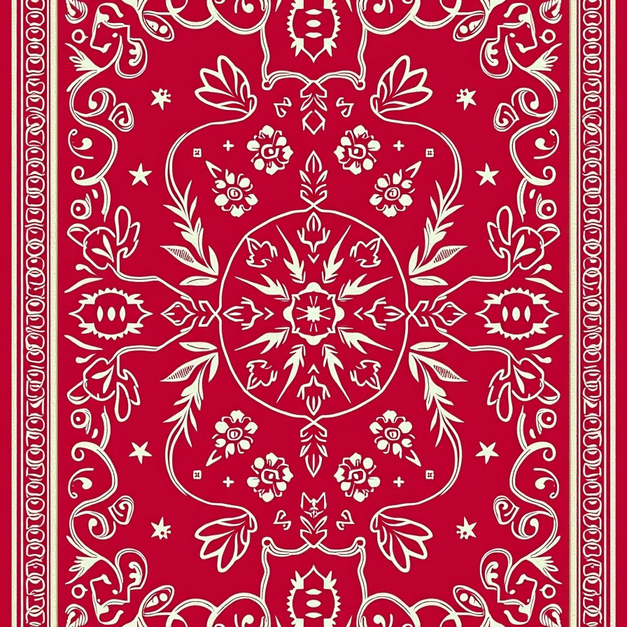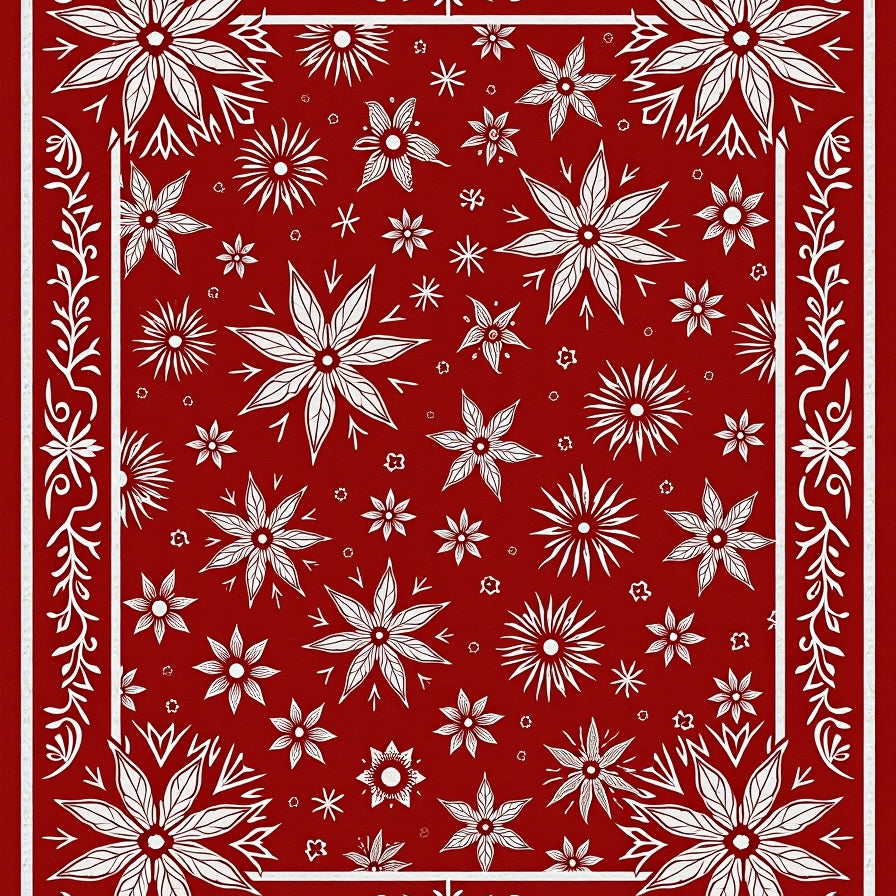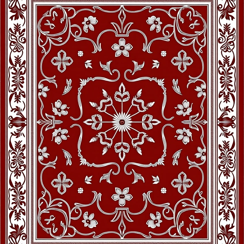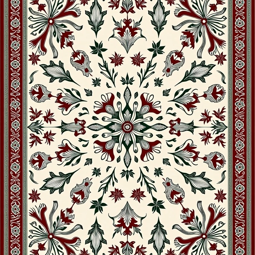 Festive Holiday Medallion Tapestry With Elegant Botanical Motifs(Red)