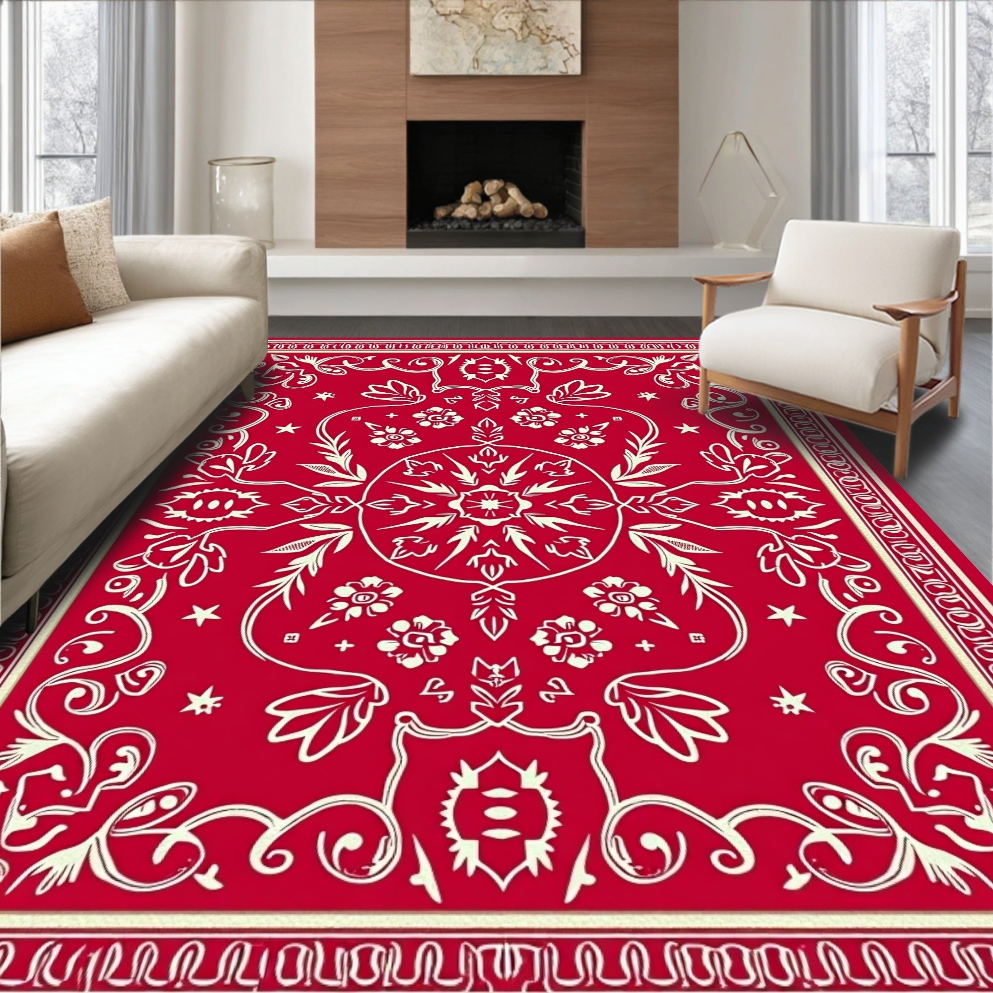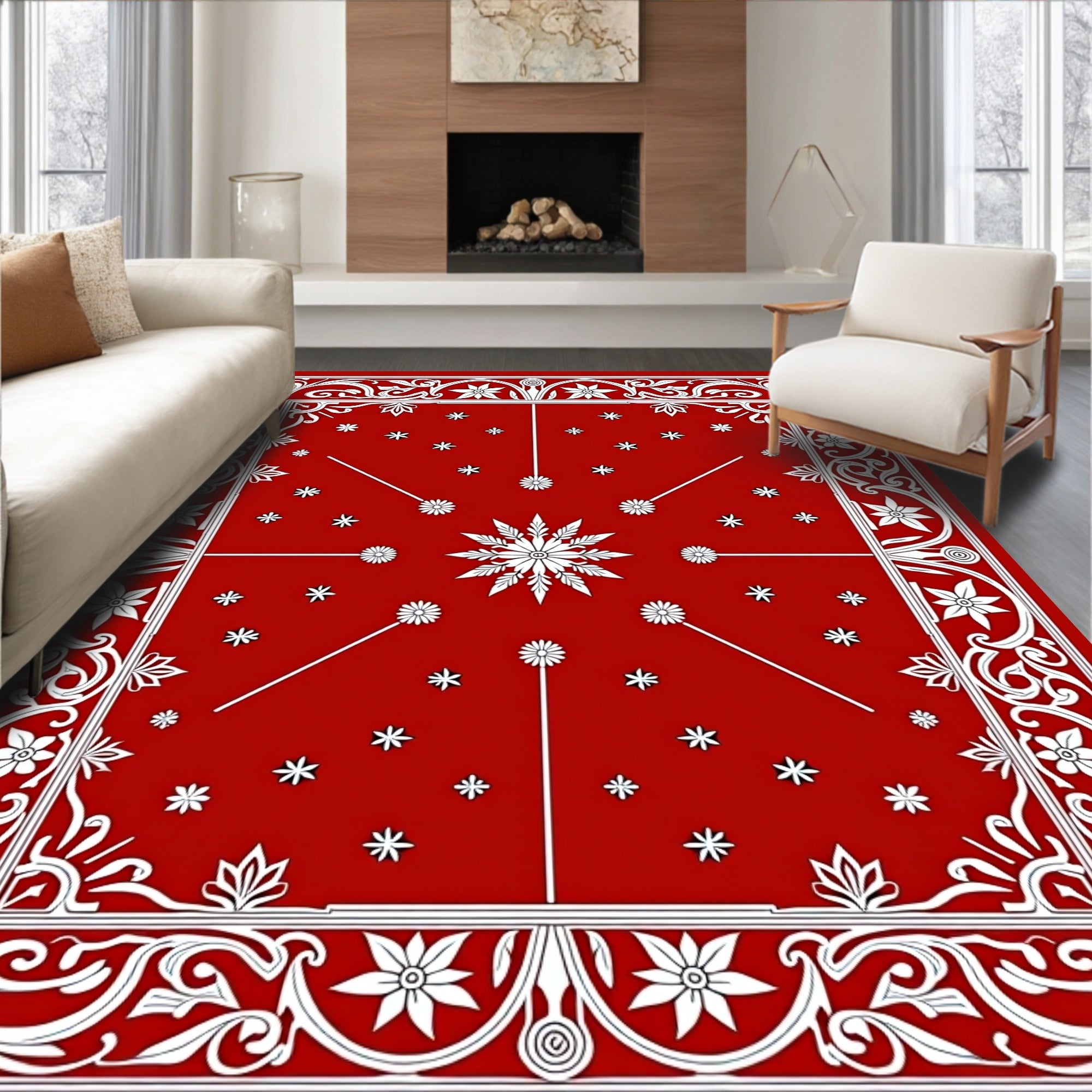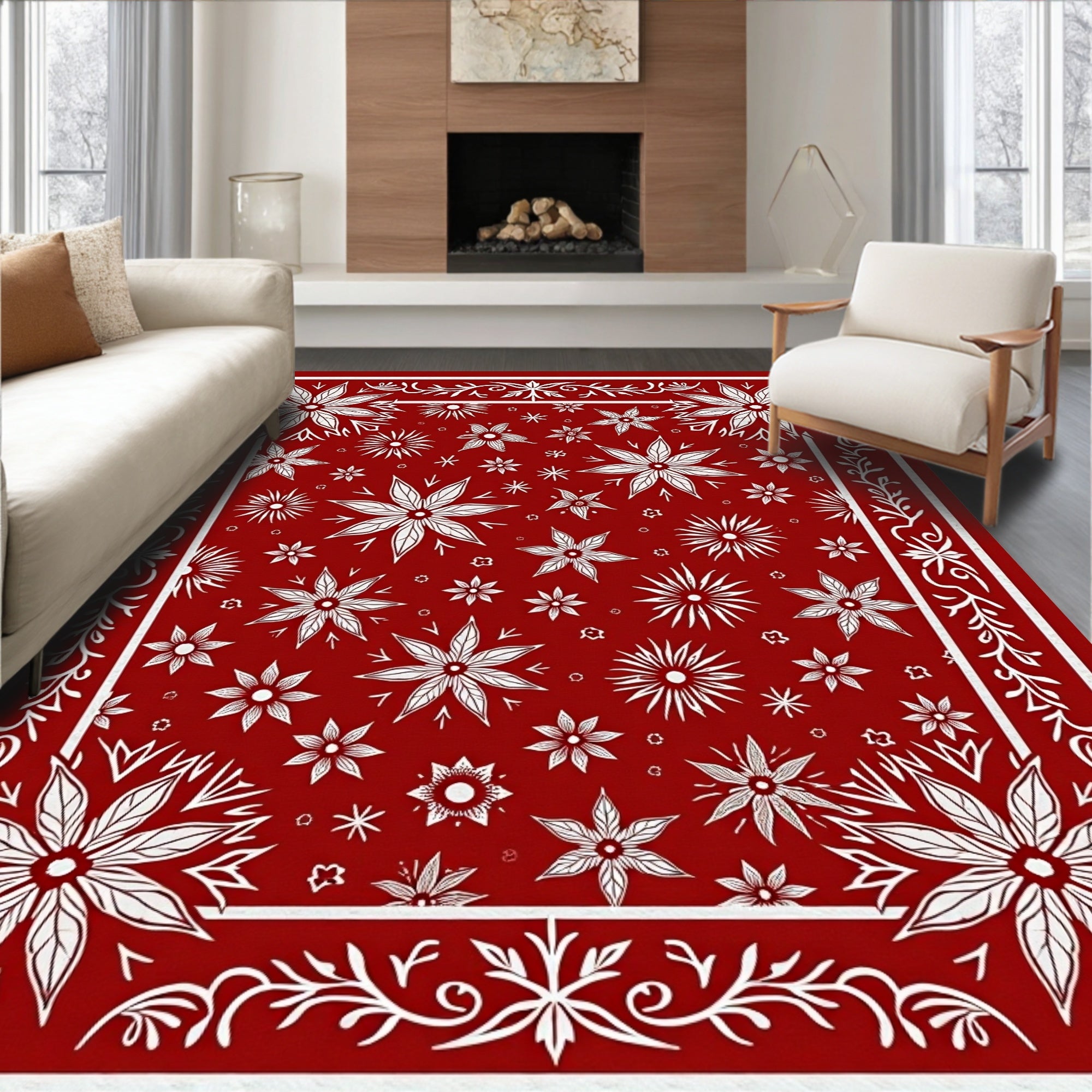 Festive Holiday Medallion Tapestry With Elegant Botanical Motifs(Red)