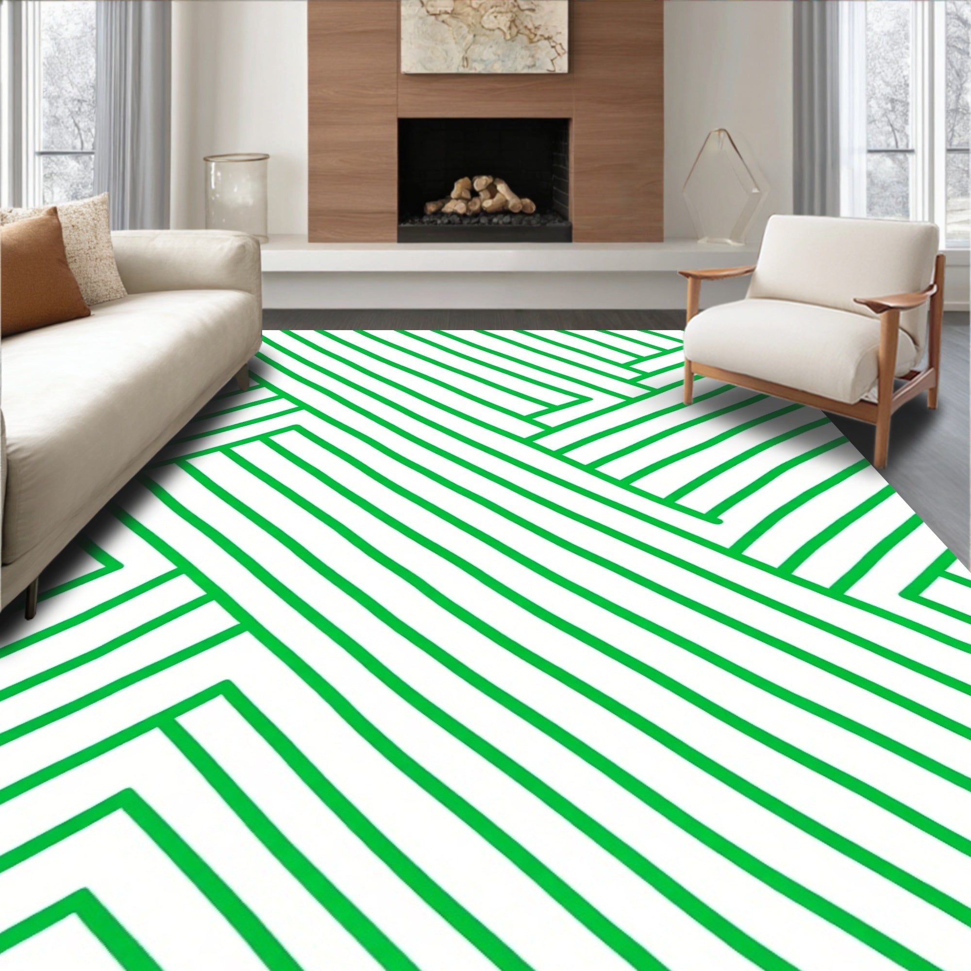 Festive Shadow Stripe With Abstract Zigzag Linework(Green)