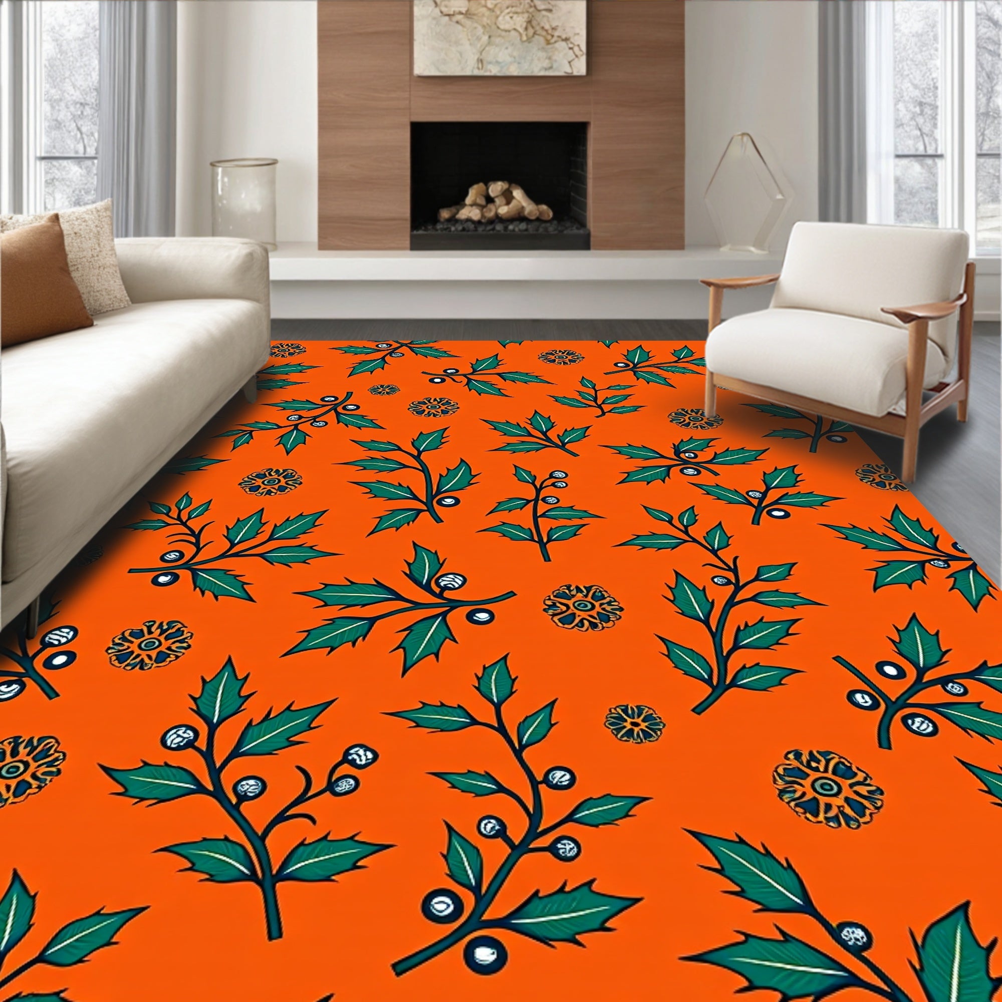 Classic Holiday Floral Tapestry with Festive Botanical Swirls(Black)