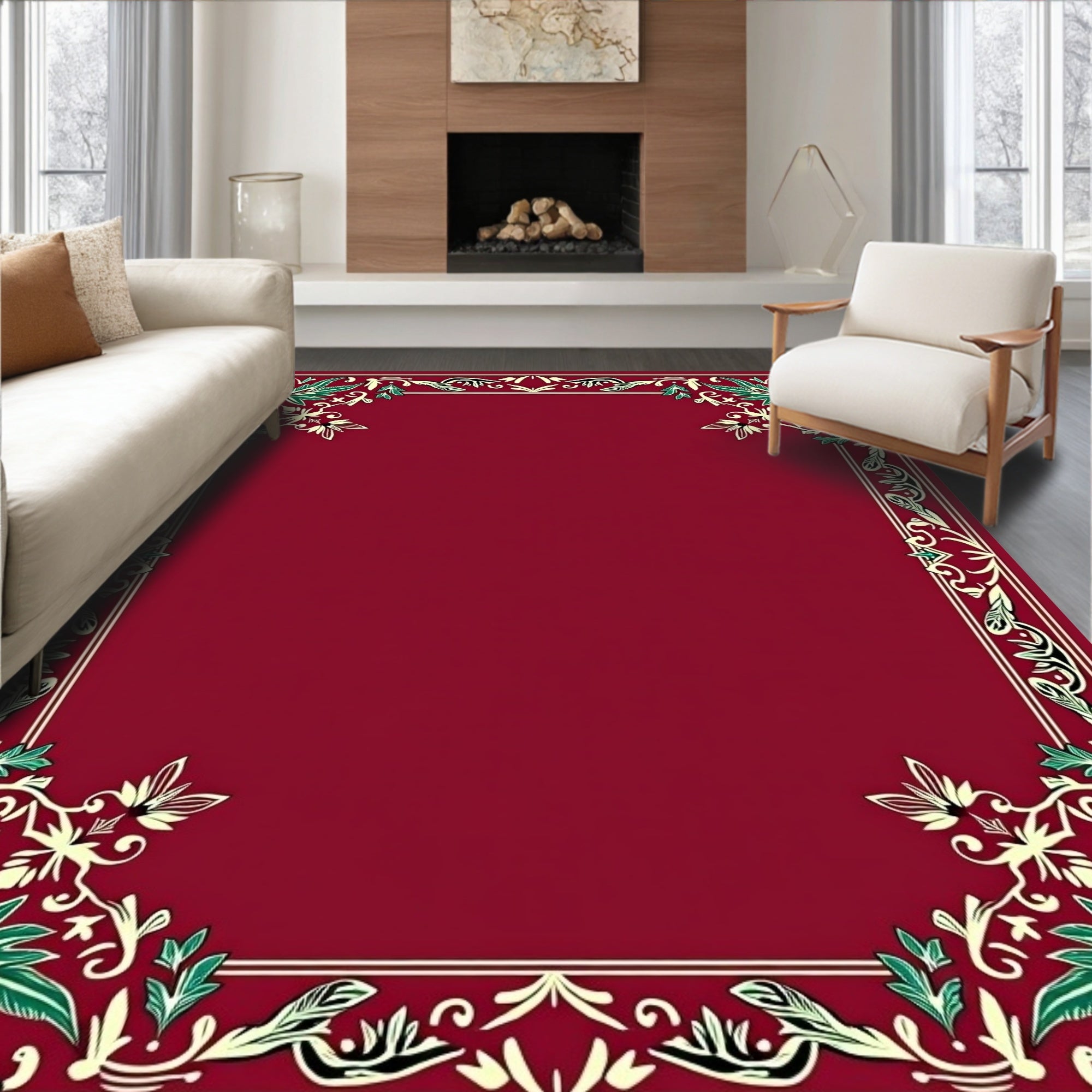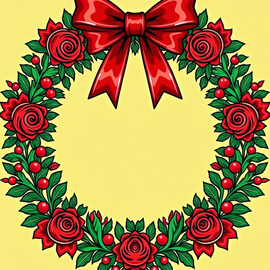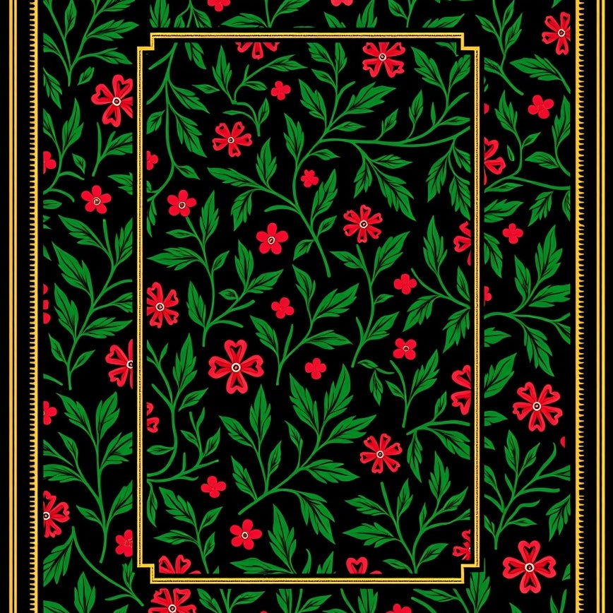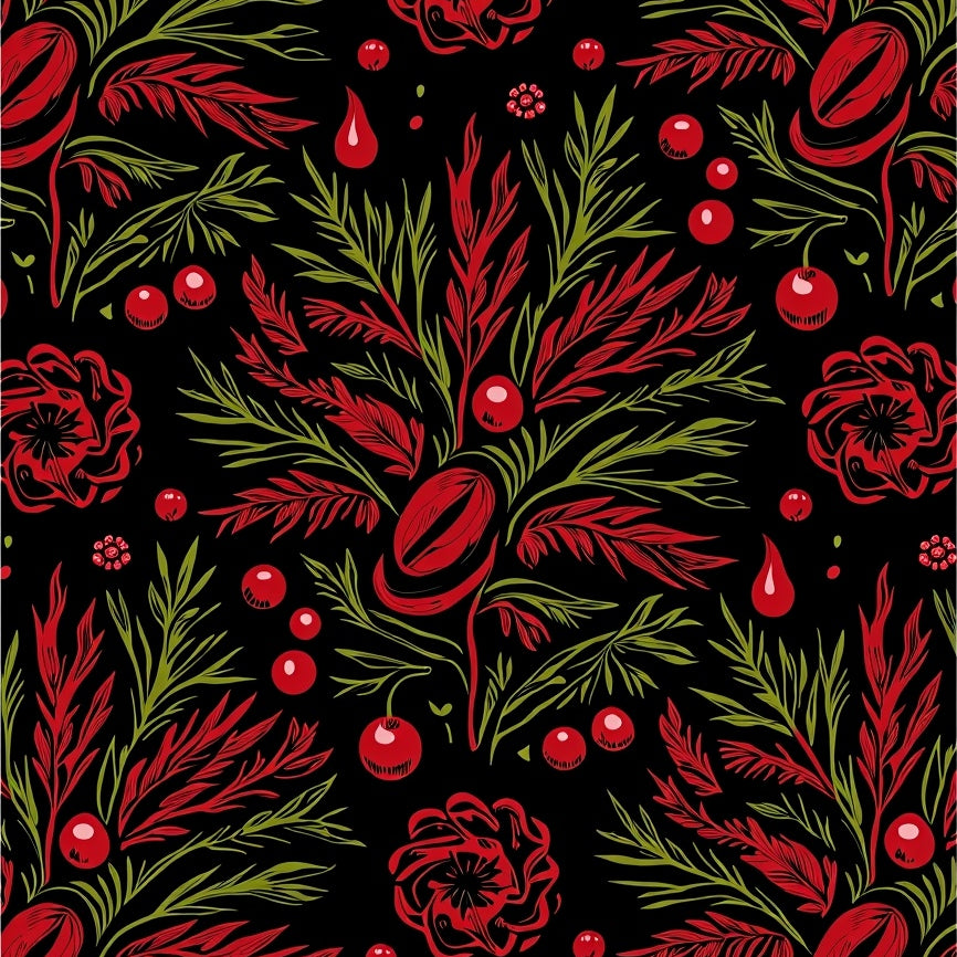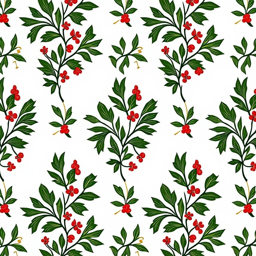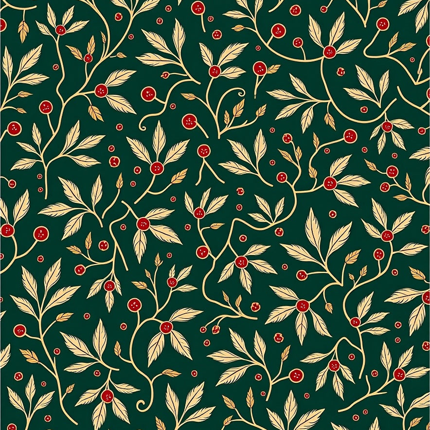 Holly Berry Motif with Vintage Scrollwork and Festive Accents(Red)