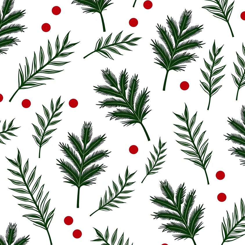 Art Snowberry Lattice with Stylized Ferns and Curved Festive Motifs(Red)