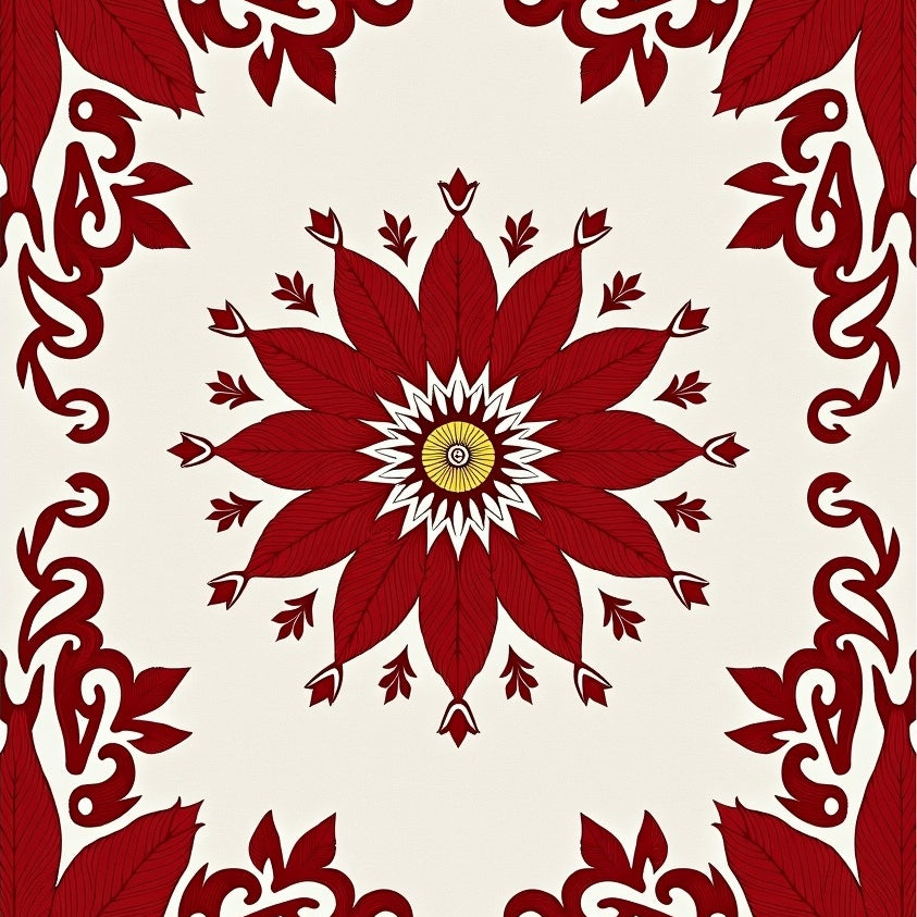 Vintage Poinsettia Bloom Design with Ornate Victorian Scrollwork(Red)
