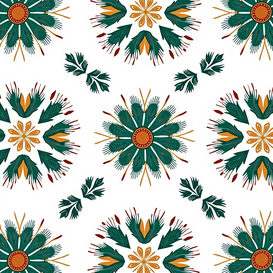 Winter Forest Medallion with Stylized Pine Branches and Starburst Highlights(Green)