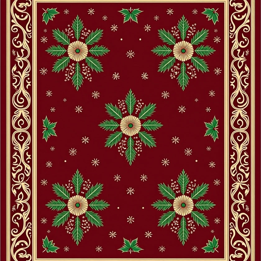 Festive Pine Bough Tapestry with Snowflake Medallion Motifs(Green)