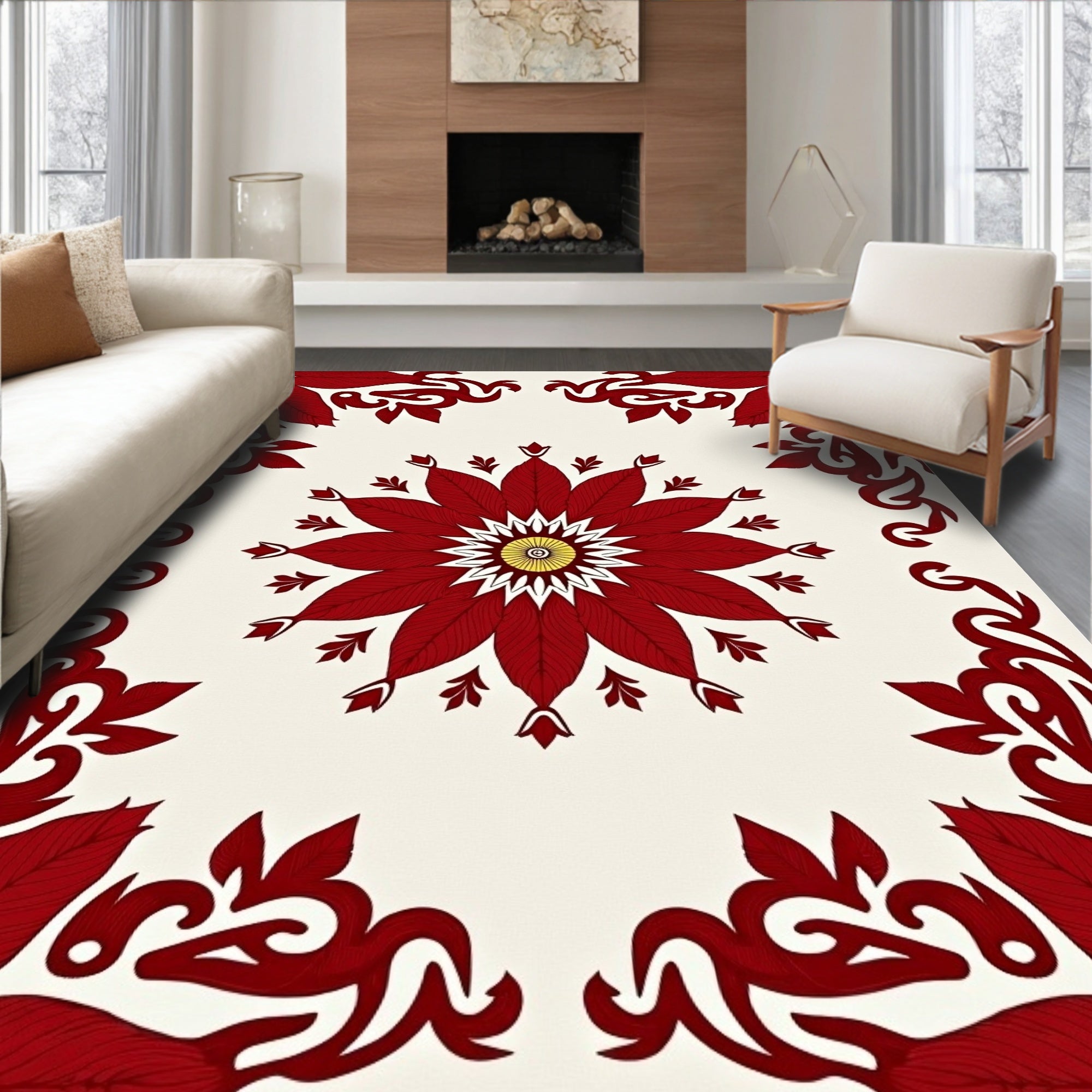 Cardinal Motif with Winter Berry Branch Decorative Floor(Red)