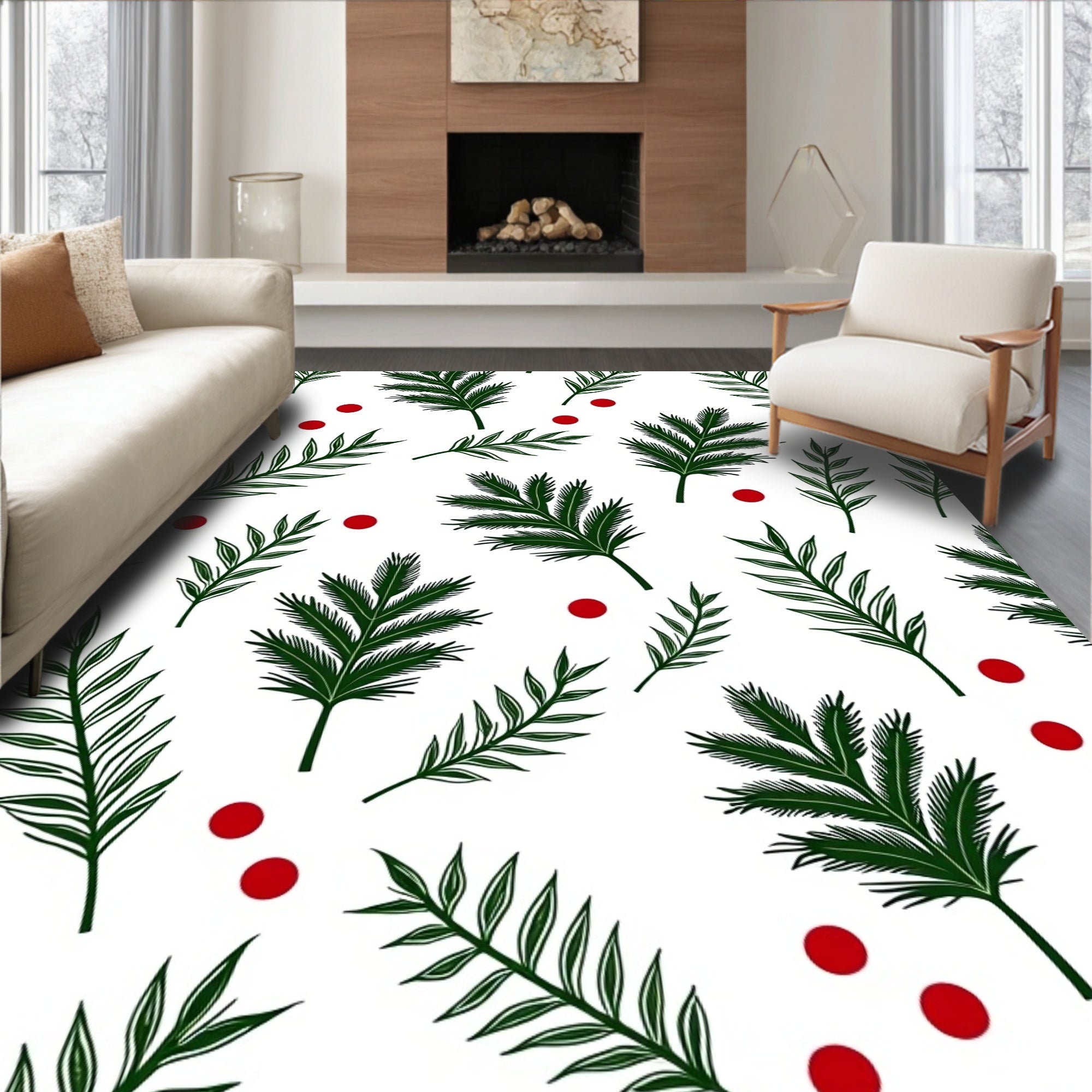 Pine Branch Design with Festive Ribbon Bow Accents Floor Covering(Green)