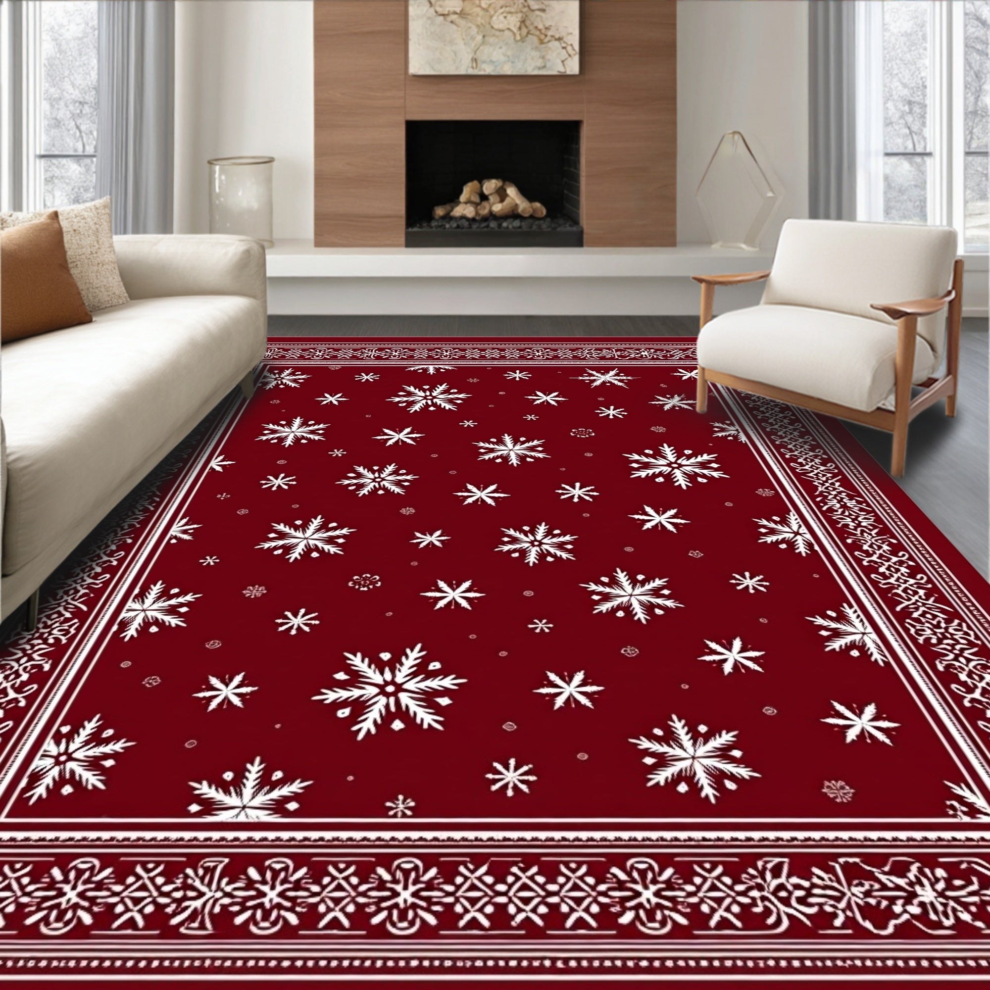 Nostalgic Winter Wonderland Tapestry With Enchanting Snowflake Motif(Red)