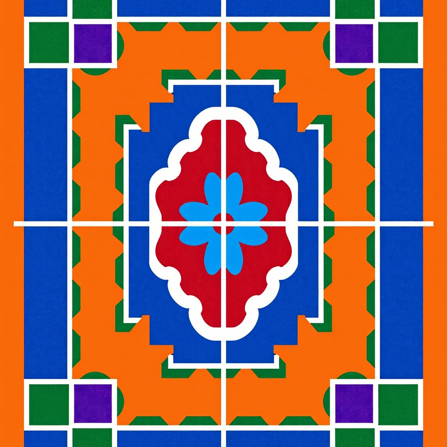 Eclectic Mosaic Welcome Displaying Kaleidoscope Blocks(Orange)