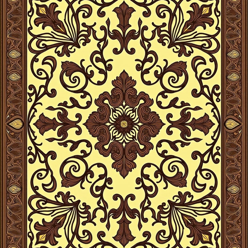 Vintage Medallion Scrollwork Interlocking Floral(Brown)