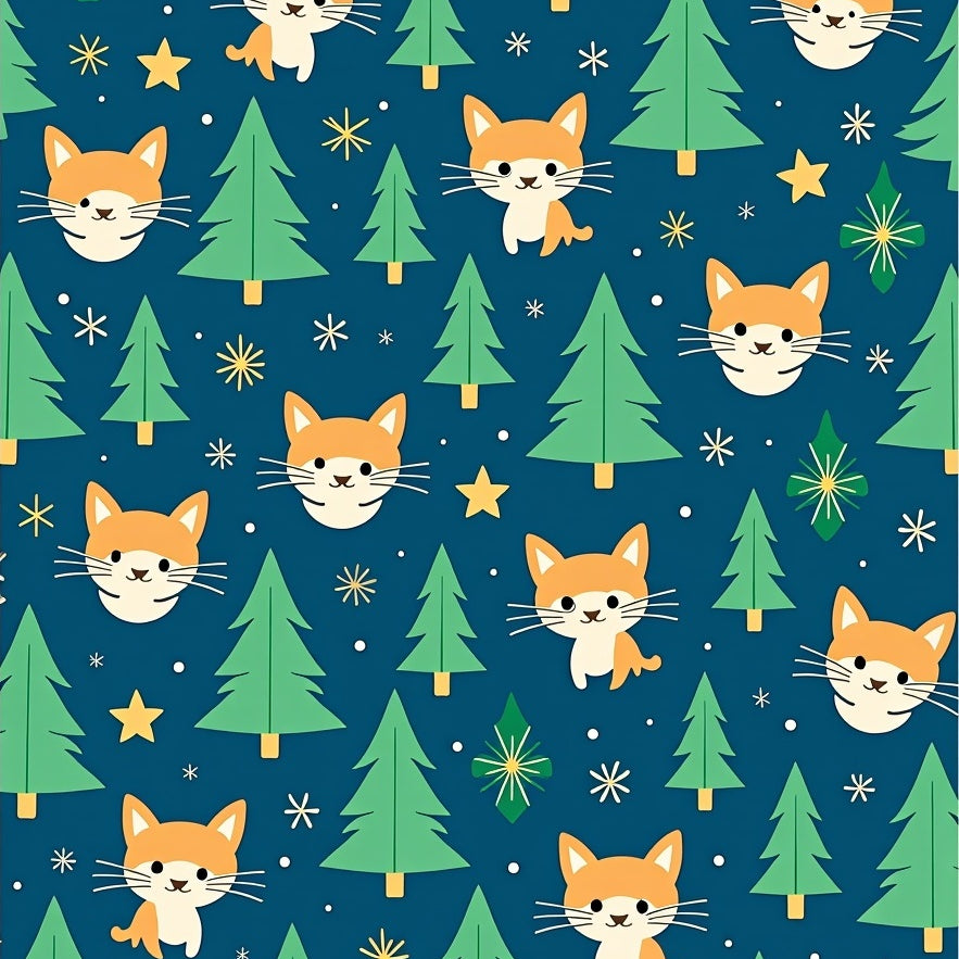 Whimsical Cat and Pine Tree with Twinkling Ornament(Blue)