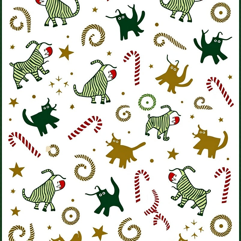 Whimsical Christmas Cat Expression with Interlocking Cane and Bell Designs(Pink)