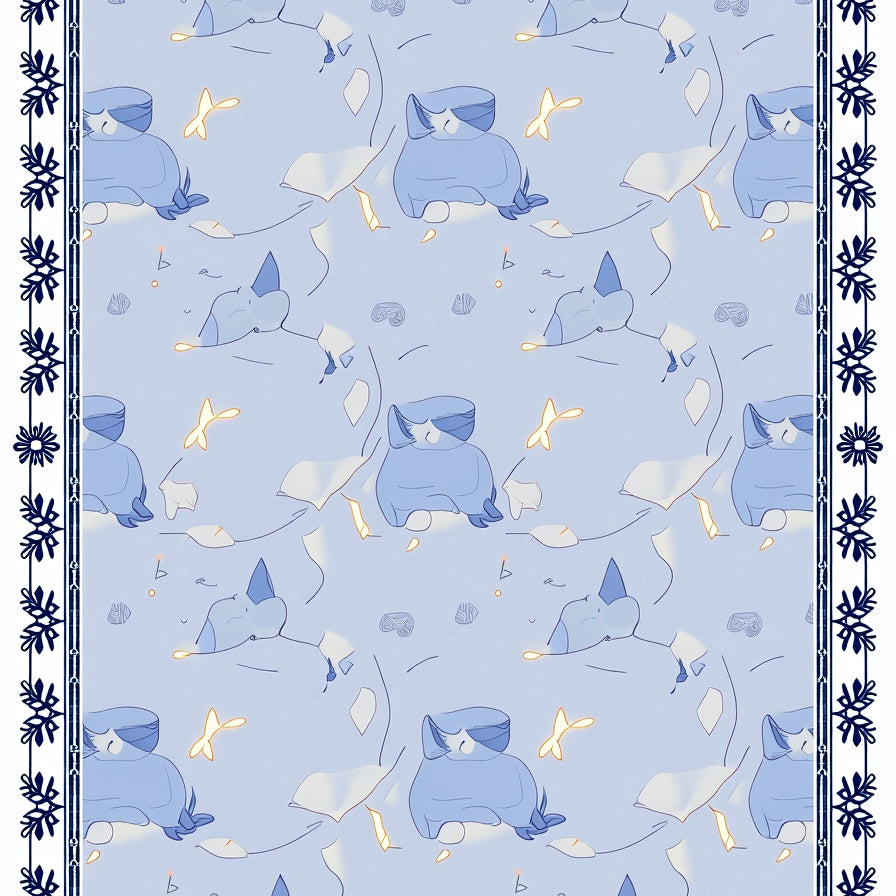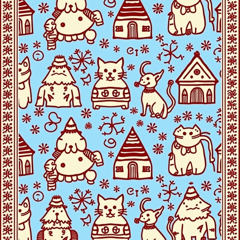 Joyful Cat and Reindeer Friends with Interlocking Snow Village Scene(Blue)