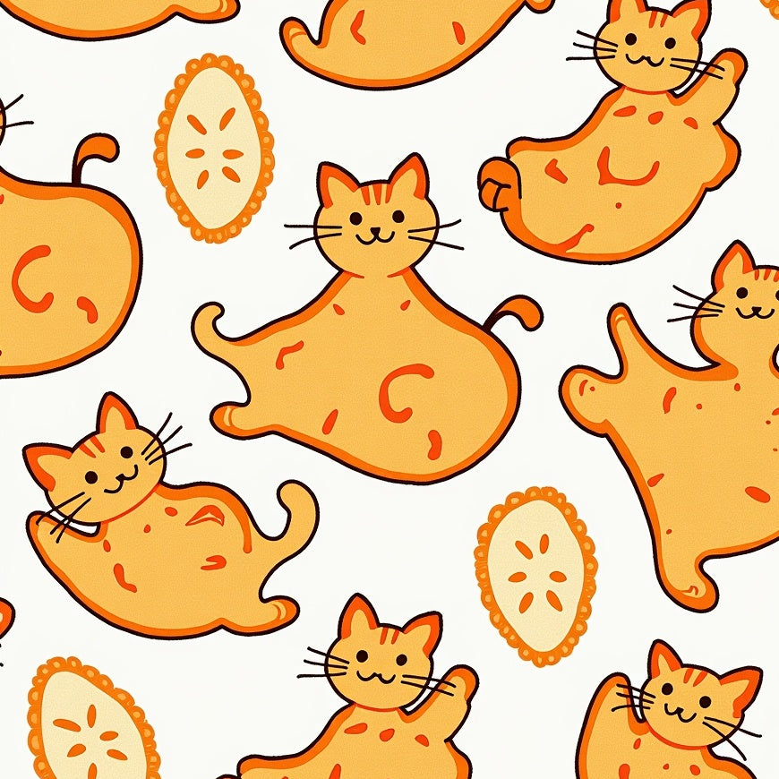 Electric Tabby Cat Portrait Decorative Floor with Snowflake Accents(Orange)