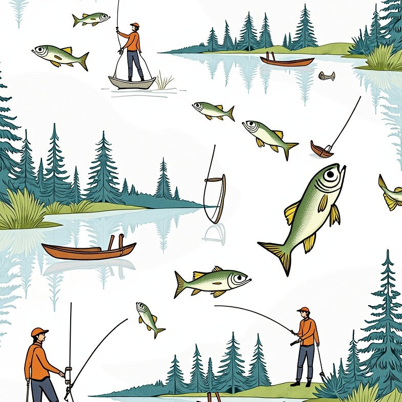 Angler Lake Scene Decorative Nautical Fish Catch Display(Brown)