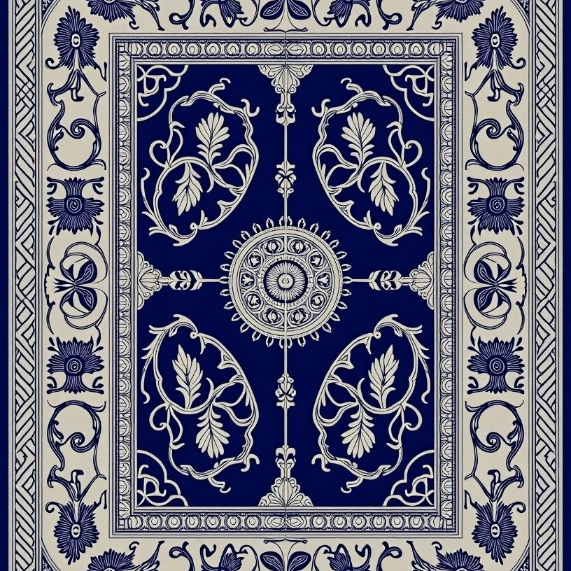 Vintage Botanical Garden Lattice Heirloom(Blue)