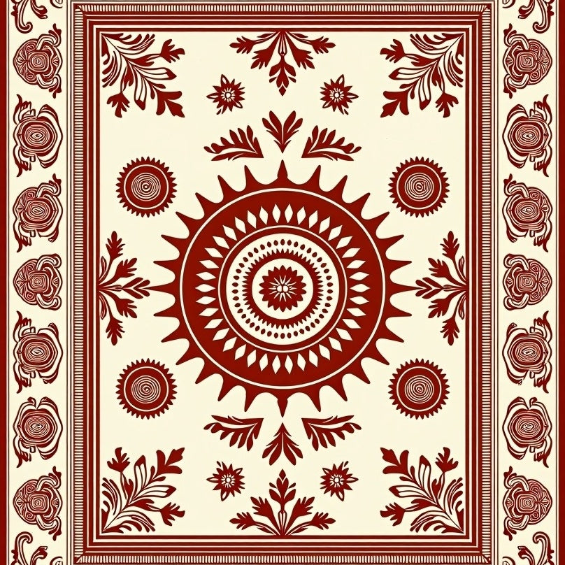 Vintage Boho Medallion Tapestry with Intricate Motifs(Ivory)